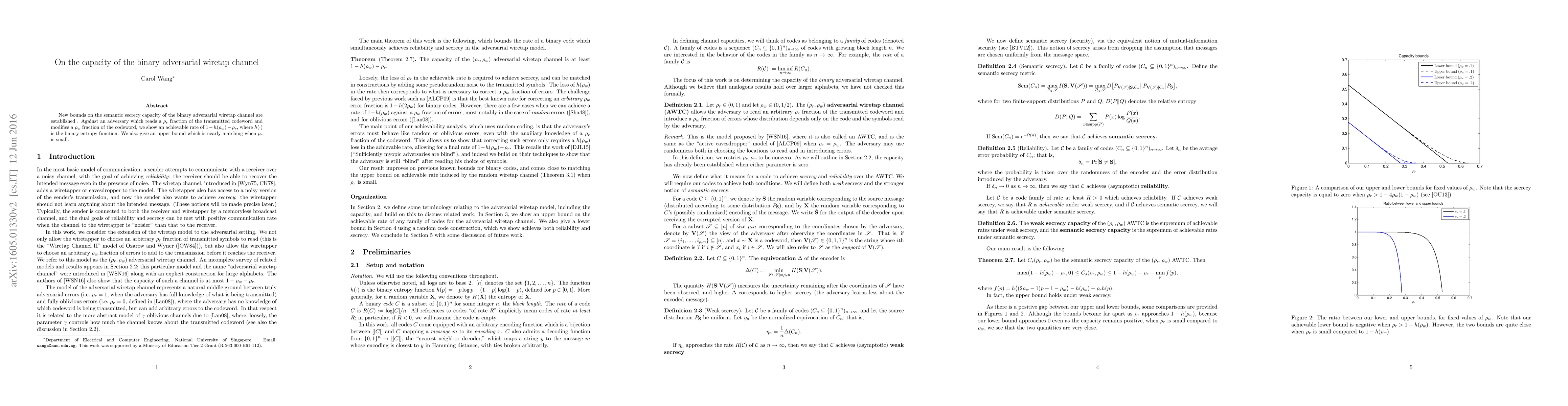The paper establishes new bounds for the semantic secrecy capacity of the binary adversarial wiretap channel, showing an achievable rate of $1-h(\rho_w)-\rho_r$ against an adversary, and provides a nearly matching upper bound when $\rho_r$ is small.
