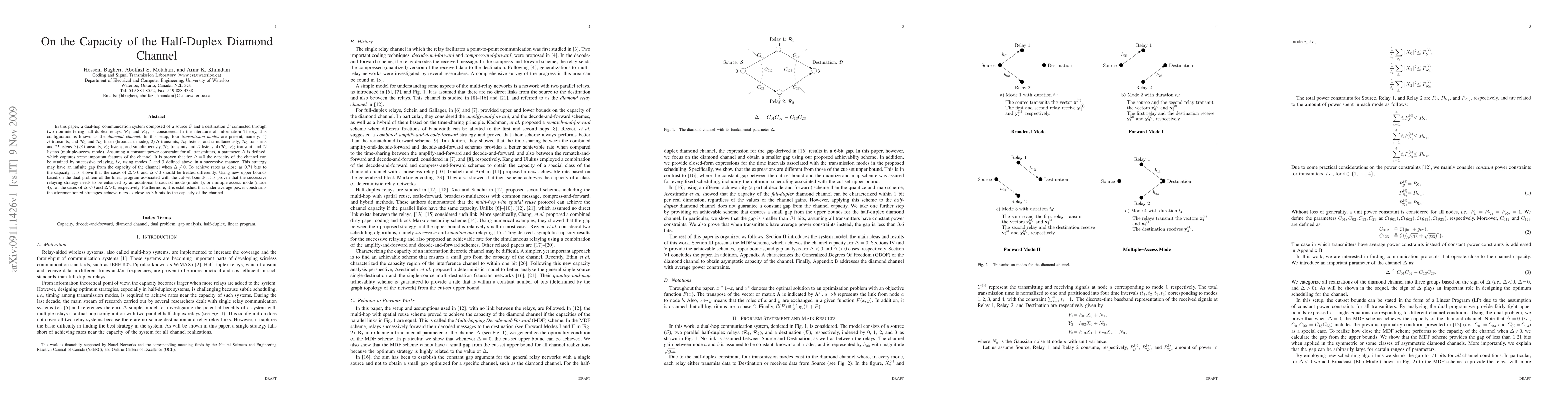 In this paper, a dual-hop communication system composed of a source S and a destination D connected through two non-interfering half-duplex relays, R1 and R2, is considered. In the literature of Information Theory, this configuration is known as the diamond channel. In this setup, four transmission modes are present, namely: 1) S transmits, and R1 and R2 listen (broadcast mode), 2) S transmits, R1 listens, and simultaneously, R2 transmits and D listens. 3) S transmits, R2 listens, and simultaneously, R1 transmits and D listens. 4) R1, R2 transmit, and D listens (multiple-access mode). Assuming a constant power constraint for all transmitters, a parameter $\Delta$ is defined, which captures some important features of the channel. It is proven that for $\Delta$=0 the capacity of the channel can be attained by successive relaying, i.e, using modes 2 and 3 defined above in a successive manner. This strategy may have an infinite gap from the capacity of the channel when $\Delta\neq$0. To achieve rates as close as 0.71 bits to the capacity, it is shown that the cases of $\Delta$>0 and $\Delta$<0 should be treated differently. Using new upper bounds based on the dual problem of the linear program associated with the cut-set bounds, it is proven that the successive relaying strategy needs to be enhanced by an additional broadcast mode (mode 1), or multiple access mode (mode 4), for the cases of $\Delta$<0 and $\Delta$>0, respectively. Furthermore, it is established that under average power constraints the aforementioned strategies achieve rates as close as 3.6 bits to the capacity of the channel.