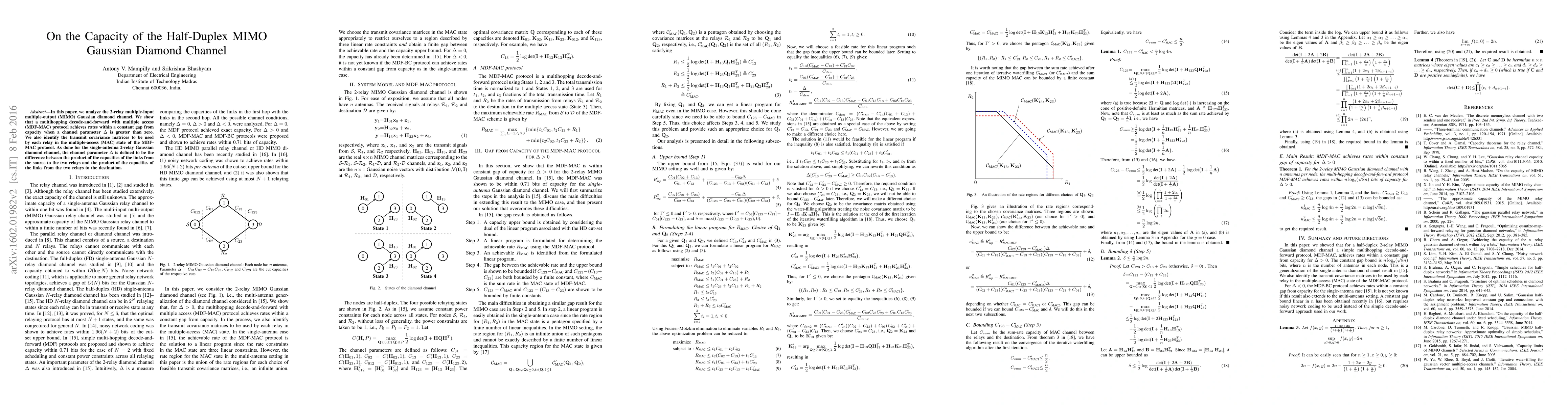 This paper investigates the capacity of a 2-relay MIMO Gaussian diamond channel, demonstrating that a multihopping decode-and-forward protocol achieves near-capacity rates when the channel parameter $\Delta$ is positive. It also specifies the optimal transmit covariance matrices for the relays in the multiple-access state.
