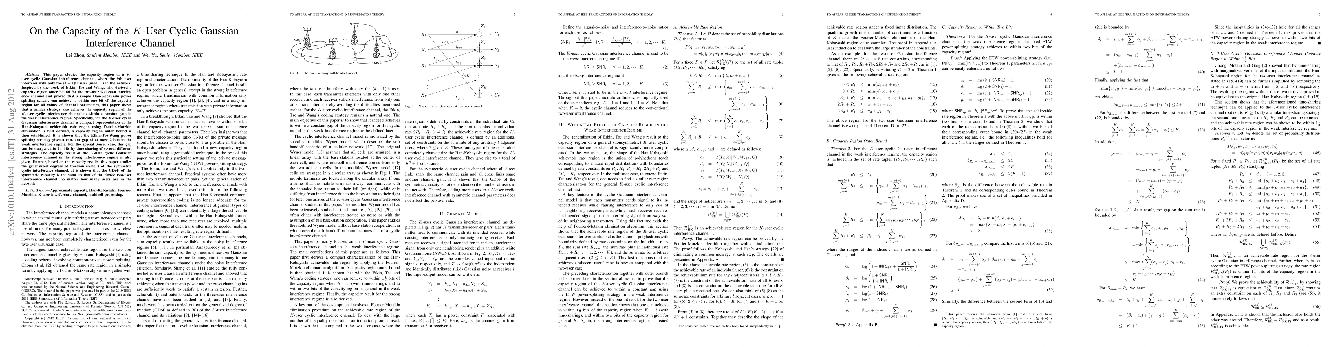 This paper studies the capacity region of a $K$-user cyclic Gaussian interference channel, where the $k$th user interferes with only the $(k-1)$th user (mod $K$) in the network. Inspired by the work of Etkin, Tse and Wang, who derived a capacity region outer bound for the two-user Gaussian interference channel and proved that a simple Han-Kobayashi power splitting scheme can achieve to within one bit of the capacity region for all values of channel parameters, this paper shows that a similar strategy also achieves the capacity region of the $K$-user cyclic interference channel to within a constant gap in the weak interference regime. Specifically, for the $K$-user cyclic Gaussian interference channel, a compact representation of the Han-Kobayashi achievable rate region using Fourier-Motzkin elimination is first derived, a capacity region outer bound is then established. It is shown that the Etkin-Tse-Wang power splitting strategy gives a constant gap of at most 2 bits in the weak interference regime. For the special 3-user case, this gap can be sharpened to 1 1/2 bits by time-sharing of several different strategies. The capacity result of the $K$-user cyclic Gaussian interference channel in the strong interference regime is also given. Further, based on the capacity results, this paper studies the generalized degrees of freedom (GDoF) of the symmetric cyclic interference channel. It is shown that the GDoF of the symmetric capacity is the same as that of the classic two-user interference channel, no matter how many users are in the network.