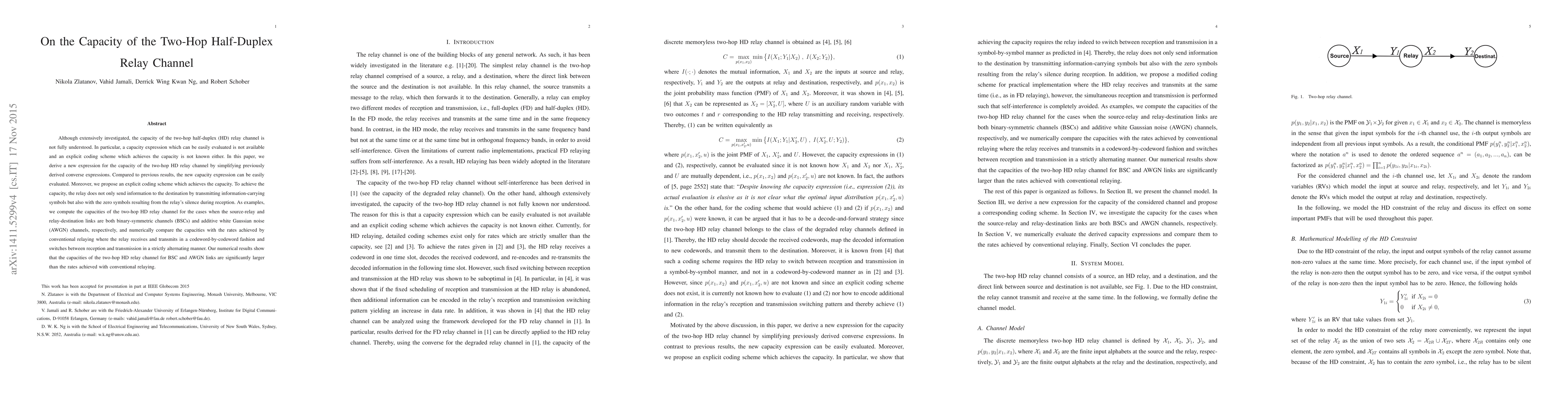 Researchers developed a new expression for the capacity of the two-hop half-duplex relay channel, showing that it can achieve higher capacities than conventional relaying methods.