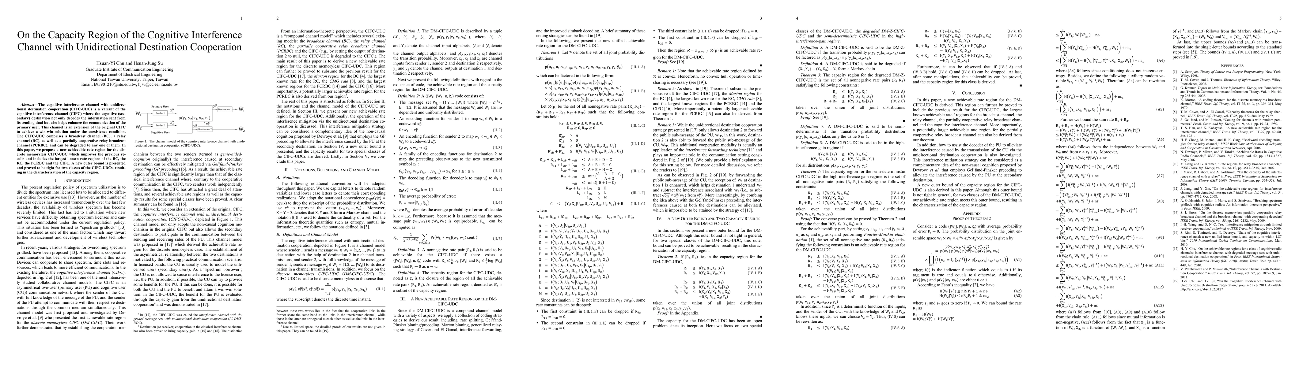 The cognitive interference channel with unidirectional destination cooperation (CIFC-UDC) is a variant of the cognitive interference channel (CIFC) where the cognitive (secondary) destination not only decodes the information sent from its sending dual but also helps enhance the communication of the primary user. This channel is an extension of the original CIFC to achieve a win-win solution under the coexistence condition. The CIFC-UDC comprises a broadcast channel (BC), a relay channel (RC), as well as a partially cooperative relay broadcast channel (PCRBC), and can be degraded to any one of them. In this paper, we propose a new achievable rate region for the dis-crete memoryless CIFC-UDC which improves the previous re-sults and includes the largest known rate regions of the BC, the RC, the PCRBC and the CIFC. A new outer bound is presented and proved to be tight for two classes of the CIFC-UDCs, result-ing in the characterization of the capacity region.