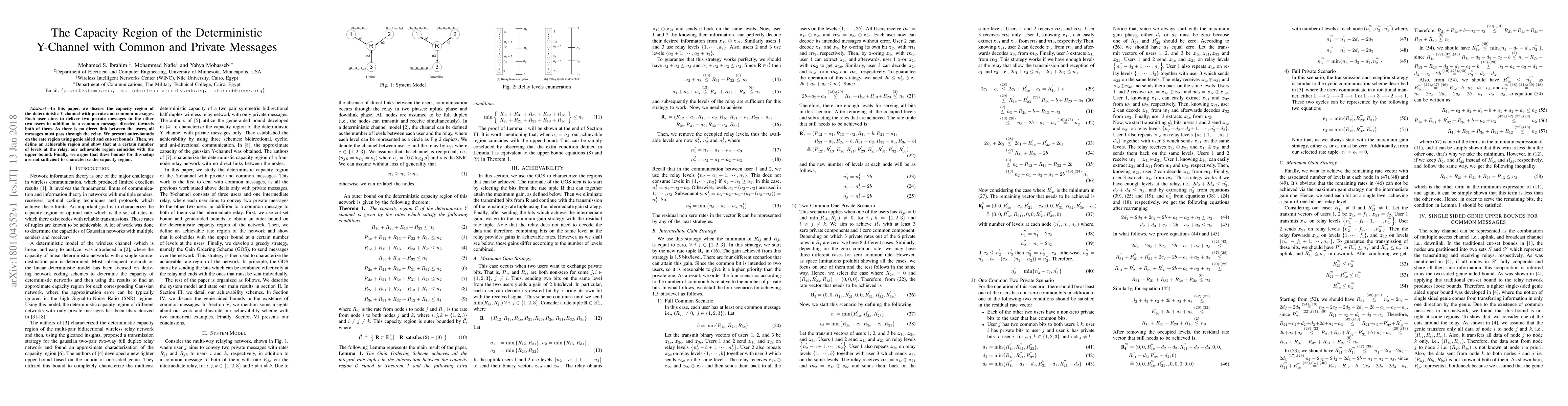 This paper explores the capacity region of the deterministic Y-channel where users transmit both private and common messages through a relay. It presents outer-bounds and an achievable region using genie-aided and cut-set methods, concluding that existing bounds are insufficient for fully characterizing the capacity region.