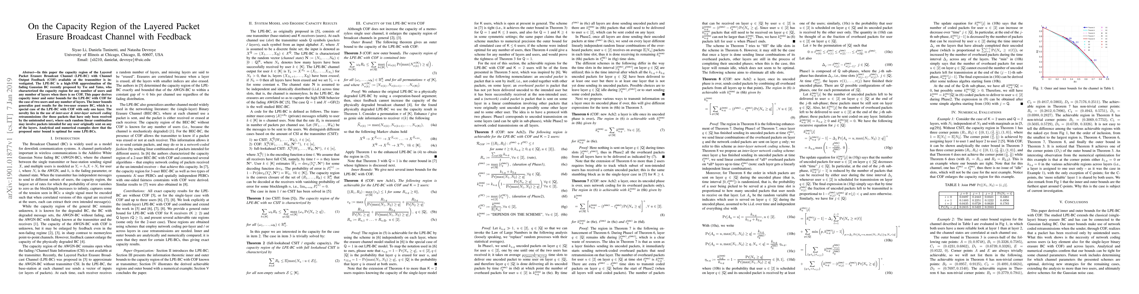 This paper investigates the capacity region of the Layered Packet Erasure Broadcast Channel with Channel Output Feedback, deriving inner and outer bounds for two-user scenarios and multiple layers. The approach utilizes inter-user and inter-layer network coding for retransmissions, demonstrating optimal outer bounds in some cases.
