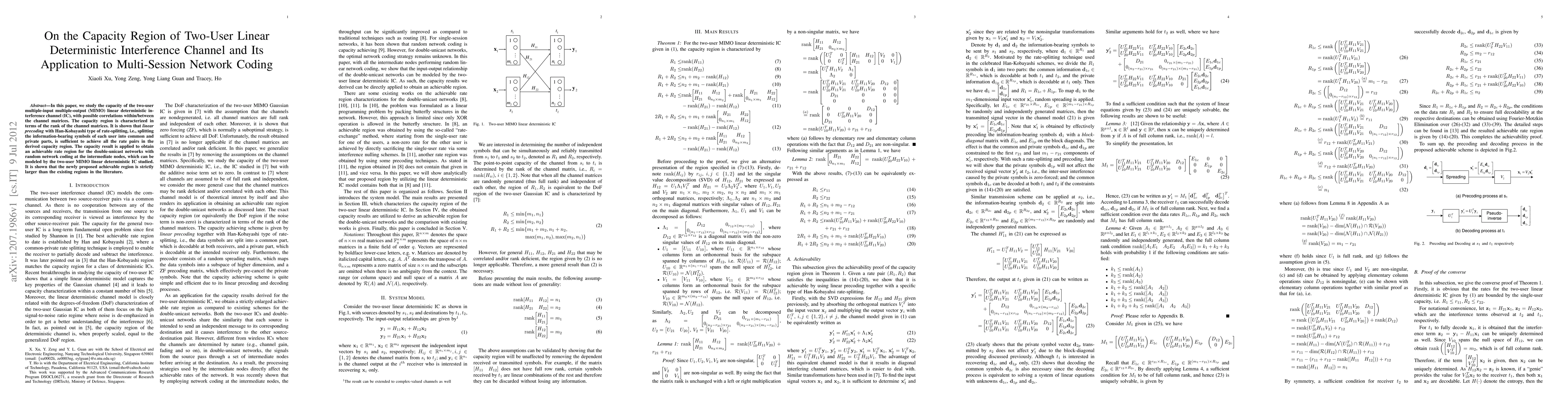 In this paper, we study the capacity of the two-user multiple-input multiple-output (MIMO) linear deterministic interference channel (IC), with possible correlations within/between the channel matrices. The capacity region is characterized in terms of the rank of the channel matrices. It is shown that \emph{linear precoding} with Han-Kobayashi type of rate-splitting, i.e., splitting the information-bearing symbols of each user into common and private parts, is sufficient to achieve all the rate pairs in the derived capacity region. The capacity result is applied to obtain an achievable rate region for the double-unicast networks with random network coding at the intermediate nodes, which can be modeled by the two-user MIMO linear deterministic IC studied. It is shown that the newly proposed achievable region is strictly larger than the existing regions in the literature.