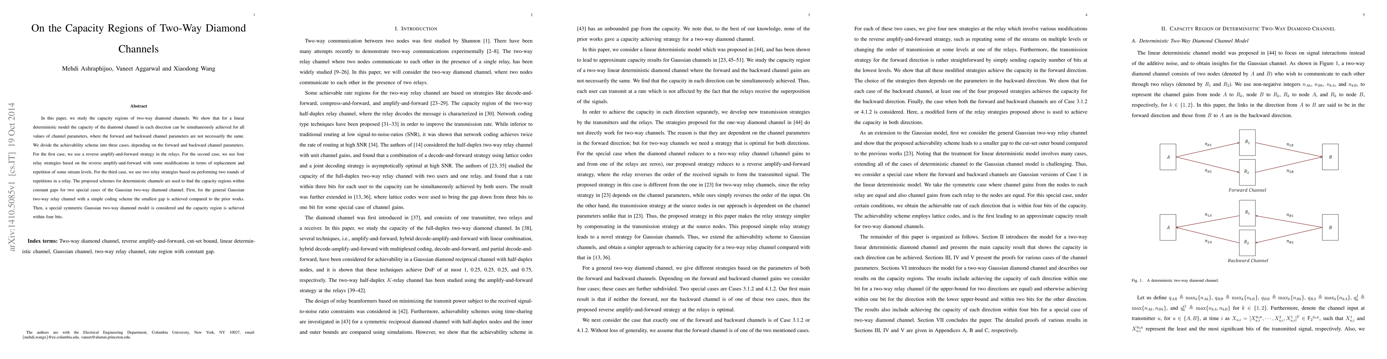 This paper investigates the capacity regions of two-way diamond channels, demonstrating achievable capacities through various relay strategies for different channel parameter scenarios. The study achieves capacity regions within constant gaps for Gaussian models, outperforming prior works in some cases.