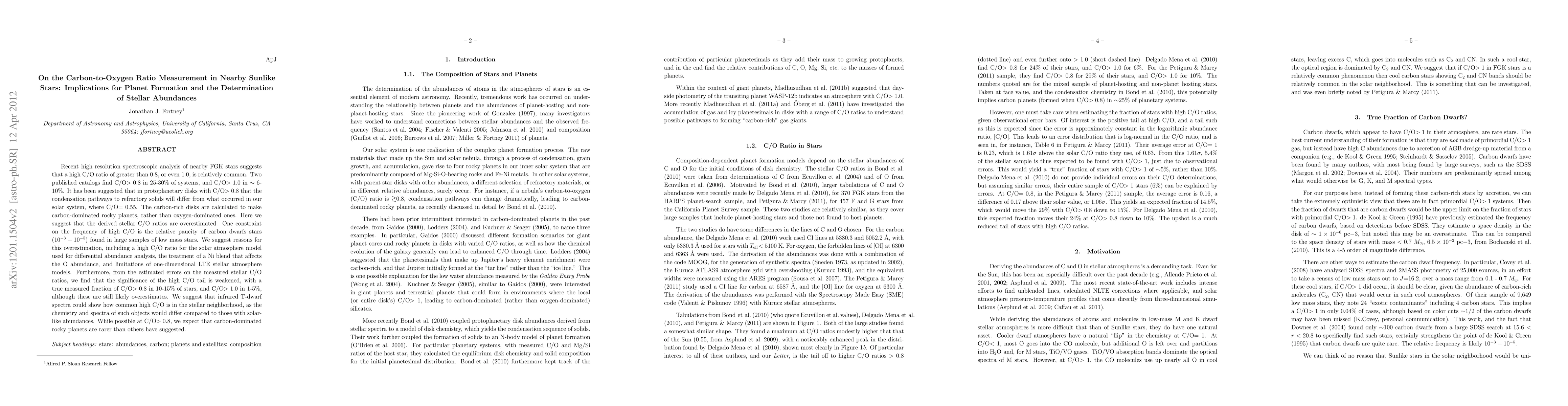 Research suggests that high carbon-to-oxygen ratios in nearby FGK stars may not be as common as previously thought, with true rates likely lower than estimated, potentially affecting planet formation predictions.