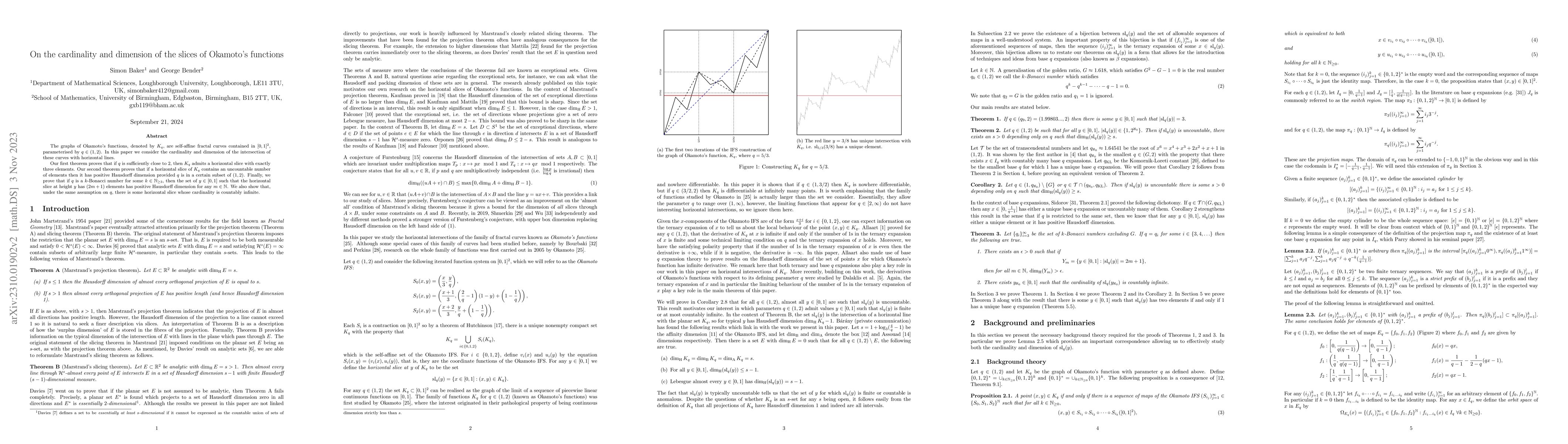 This paper explores the cardinality and dimension of horizontal slices of Okamoto's self-affine fractal curves $K_q$. It proves that for $q$ near 2, $K_q$ has a slice with exactly three points, and if a slice contains uncountably many points, it has positive Hausdorff dimension under certain conditions. Additionally, it shows that for $q$ a $k$-Bonacci number, slices with an odd number of points have positive Hausdorff dimension, and there exists a slice with countably infinite points.
