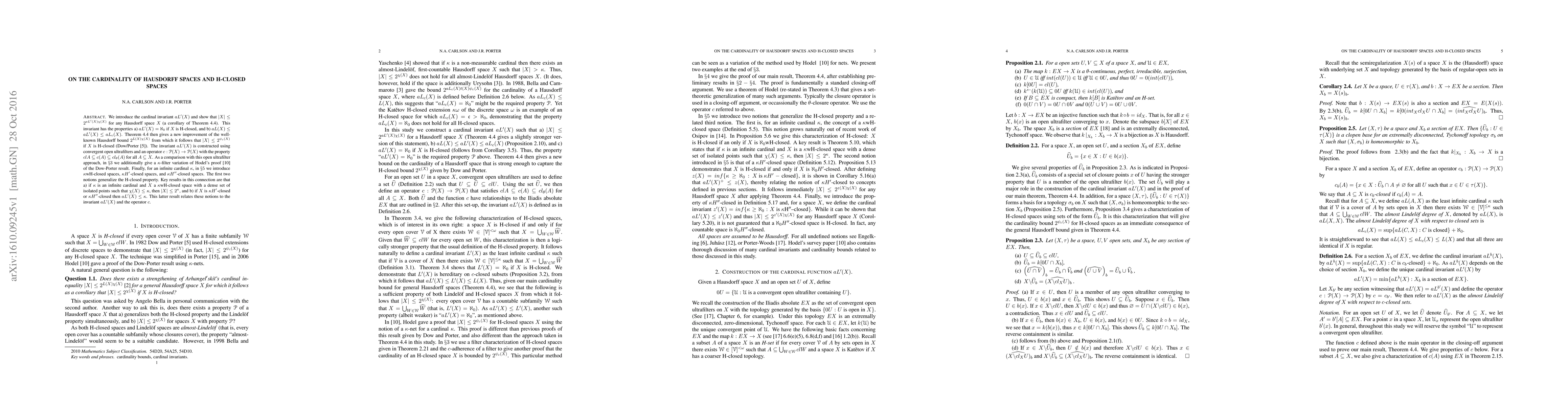We introduce the cardinal invariant $aL^\prime(X)$ and show that $|X|\leq 2^{aL^\prime(X)\chi(X)}$ for any Hausdorff space $X$ (a corollary of Theorem 4.4. This invariant has the properties a) $aL^\prime(X)=\aleph_0$ if $X$ is H-closed, and b) $aL(X)\leq aL^\prime(X)\leq aL_c(X)$. Theorem 4.4 then gives a new improvement of the well-known Hausdorff bound $2^{L(X)\chi(X)}$ from which it follows that $|X|\leq 2^{\psi_c(X)}$ if $X$ is H-closed (Dow/Porter [5]). The invariant $aL^\prime(X)$ is constructed using convergent open ultrafilters and an operator $c:\scr{P}(X)\to\scr{P}(X)$ with the property $clA\subseteq c(A)\subseteq cl_\theta(A)$ for all $A\subseteq X$. As a comparison with this open ultrafilter approach, in $\S 3$ we additionally give a $\kappa$-filter variation of Hodel's proof [10] of the Dow-Porter result. Finally, for an infinite cardinal $\kappa$, in $\S 5$ we introduce $\kappa$wH-closed spaces, $\kappa H^\prime$-closed spaces, and $\kappa H^{\prime\prime}$-closed spaces. The first two notions generalize the H-closed property. Key results in this connection are that a) if $\kappa$ is an infinite cardinal and $X$ a $\kappa$wH-closed space with a dense set of isolated points such that $\chi(X)\leq\kappa$, then $|X|\leq 2^{\kappa}$, and b) if $X$ is $\kappa H^\prime$-closed or $\kappa H^{\prime\prime}$-closed then $aL^\prime(X)\leq\kappa$. This latter result relates these notions to the invariant $aL^\prime(X)$ and the operator $c$.