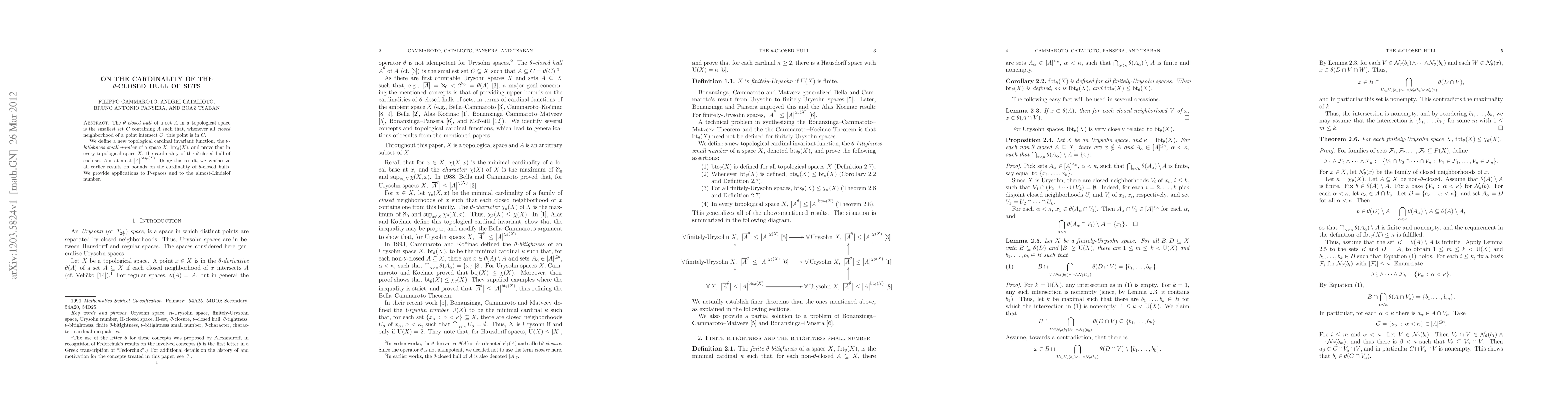 The \theta-closed hull of a set A in a topological space is the smallest set C containing A such that, whenever all $closed$ neighborhoods of a point intersect C, this point is in C. We define a new topological cardinal invariant function, the $\theta-bitighness small number$ of a space X, bts_theta(X), and prove that in every topological space X, the cardinality of the theta-closed hull of each set A is at most |A|^{bts_theta(X)}. Using this result, we synthesize all earlier results on bounds on the cardinality of theta-closed hulls. We provide applications to P-spaces and to the almost-Lindelof number.