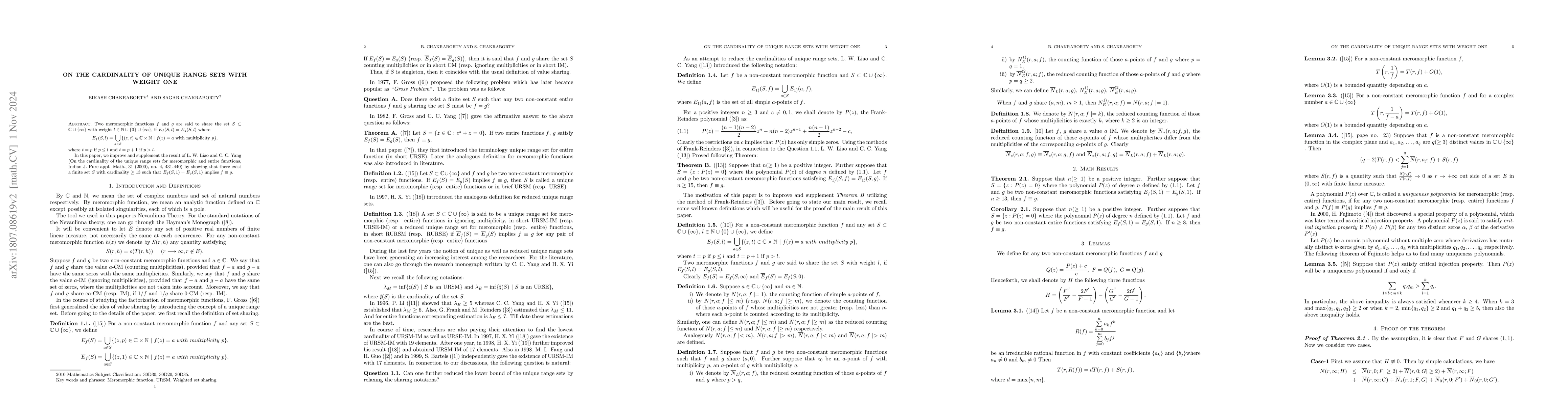 This paper enhances previous results on the cardinality of unique range sets for meromorphic functions by demonstrating that there exists a finite set $S$ with cardinality at least 13 such that shared ranges with weight one imply the functions are identical.