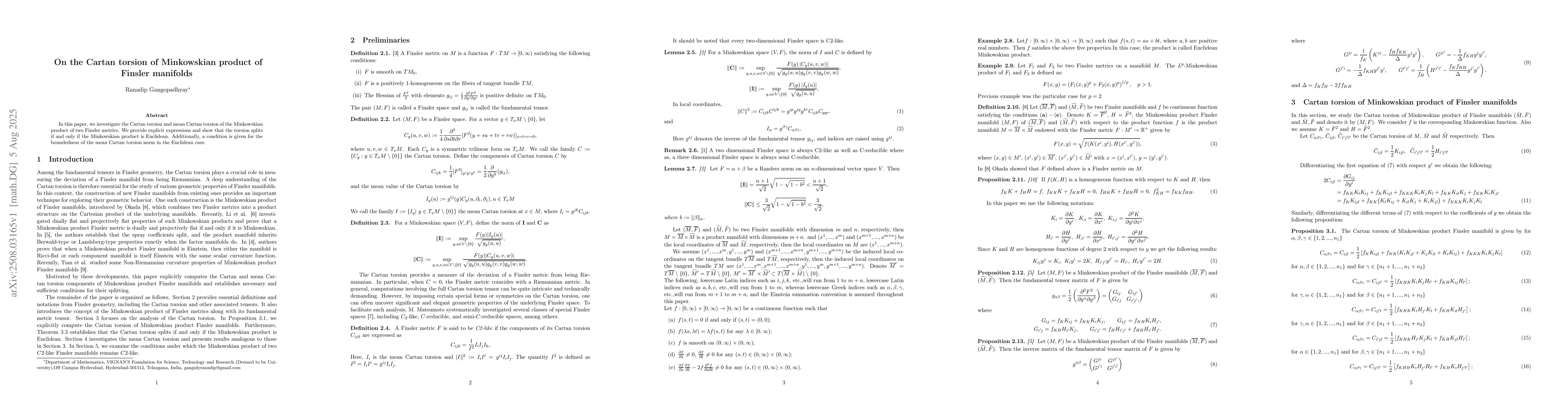 In this paper, we investigate the Cartan torsion and mean Cartan torsion of the Minkowskian product of two Finsler metrics. We derive explicit formulas for both torsions and analyze their geometric behavior. In particular, we demonstrate that both the Cartan torsion and mean Cartan torsion decompose additively if and only if the Minkowskian product is Euclidean. Additionally, we provide a necessary and sufficient condition for the norm of the mean Cartan torsion to remain bounded in the Euclidean case.