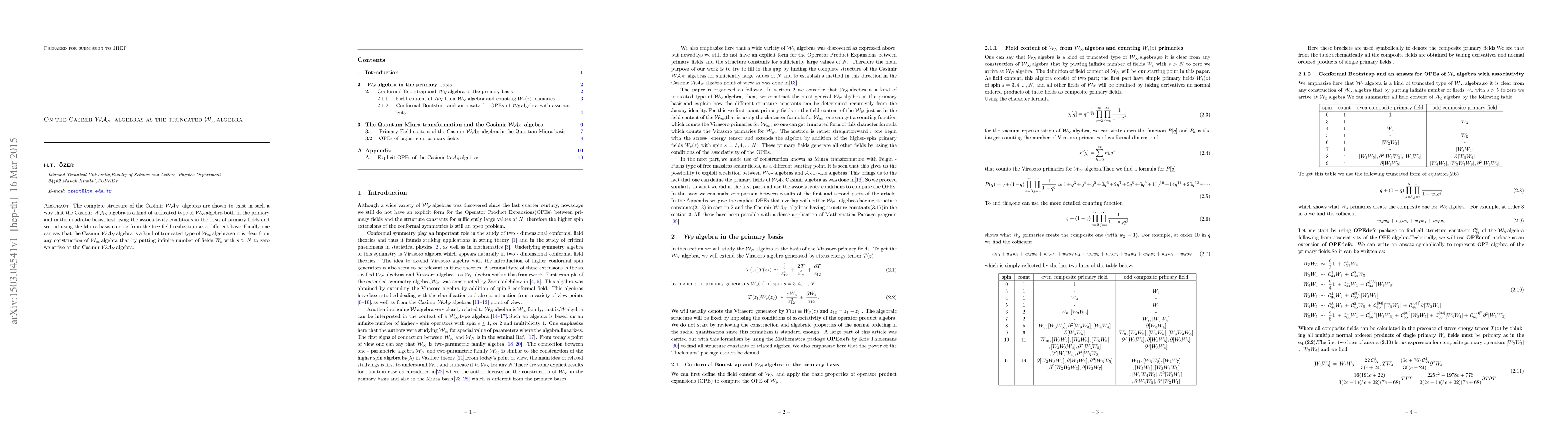The complete structure of the Casimir ${\cal{W}\cal{A}}_{\it{N}}$ algebras are shown to exist in such a way that the Casimir ${\cal{W}\cal{A}}_{\it{N}}$ algebra is a kind of truncated type of $\cal{W}_{\infty}$ algebra both in the primary and in the quadratic basis, first using the associativity conditions in the basis of primary fields and second using the Miura basis coming from the free field realization as a different basis. Finally one can say that the Casimir ${\cal{W}\cal{A}}_{\it{N}}$ algebra is a kind of truncated type of $\cal{W}_{\infty}$algebra,so it is clear from any construction of $\cal{W}_{\infty}$ algebra that by putting infinite number of fields $W_{s}$ with $s>N$ to zero we arrive at the Casimir ${\cal{W}\cal{A}}_{\it{N}}$ algebra.