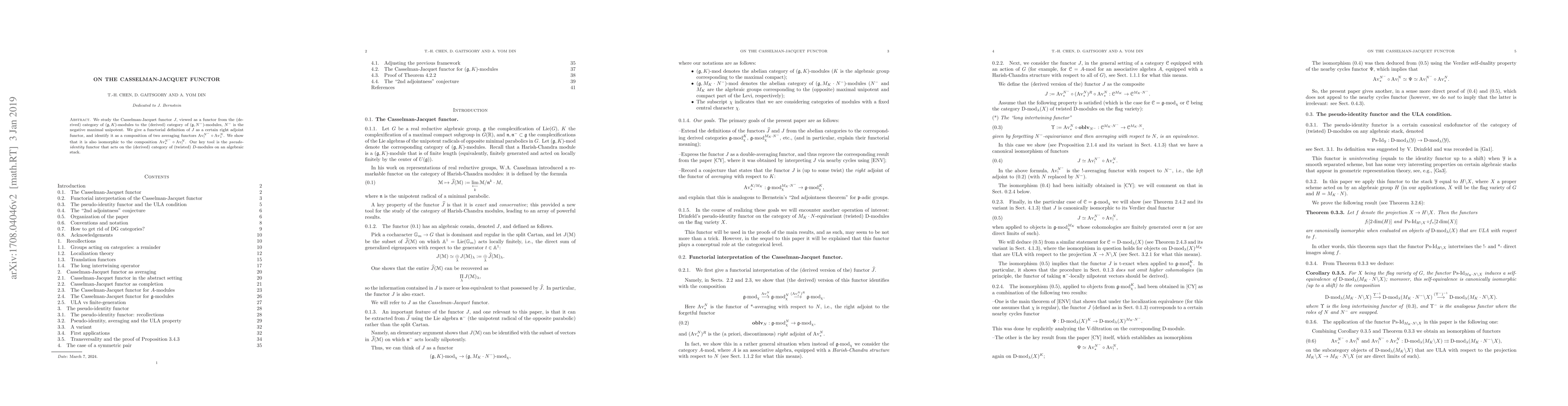 Researchers study the Casselman-Jacquet functor as a tool for averaging modules in representation theory, finding it to be a composition of two averaging functors.