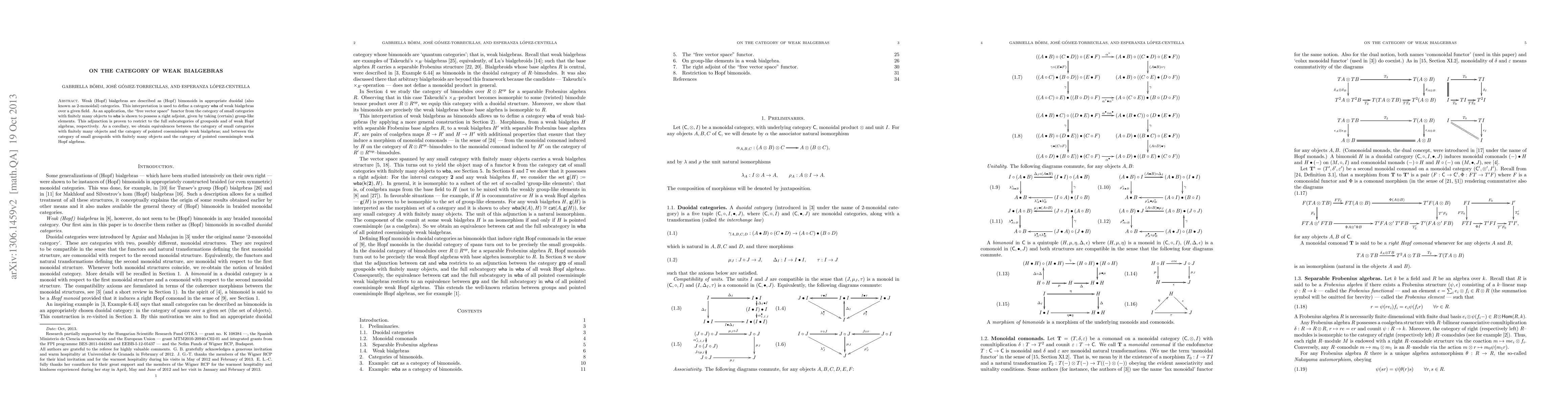 This paper defines weak bialgebras as bimonoids in duoidal categories and constructs a category wba for them. It demonstrates an adjunction between small categories with finitely many objects and wba, leading to equivalences between these categories and those of pointed cosemisimple weak bialgebras and weak Hopf algebras.