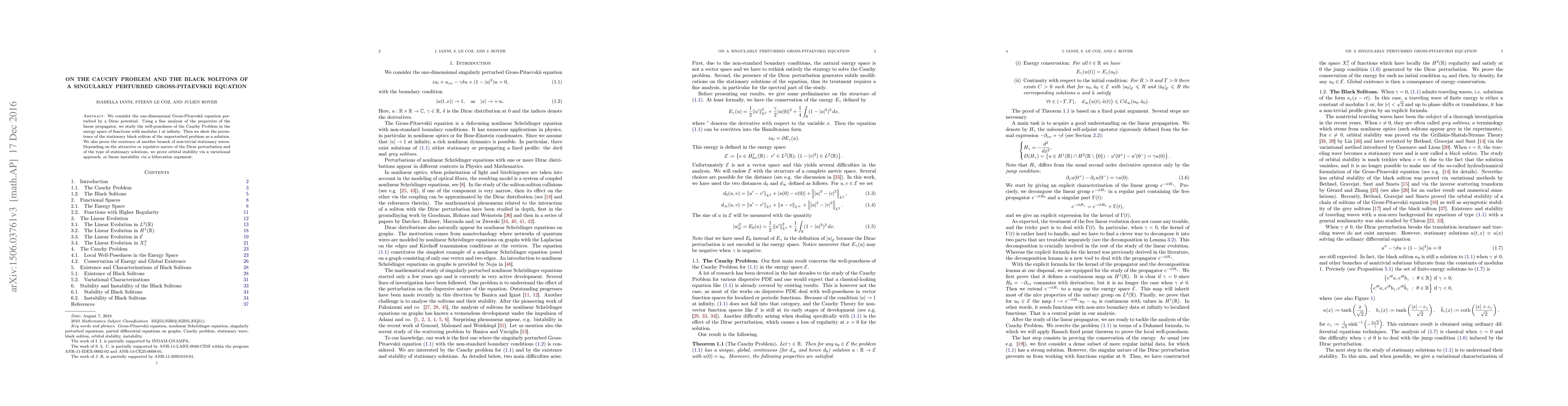 This paper investigates the Cauchy problem for a singularly perturbed Gross-Pitaevskii equation with a Dirac potential. It establishes well-posedness in energy space and demonstrates the persistence of black solitons, alongside the existence of non-trivial stationary waves, with stability analyses based on the nature of the perturbation.