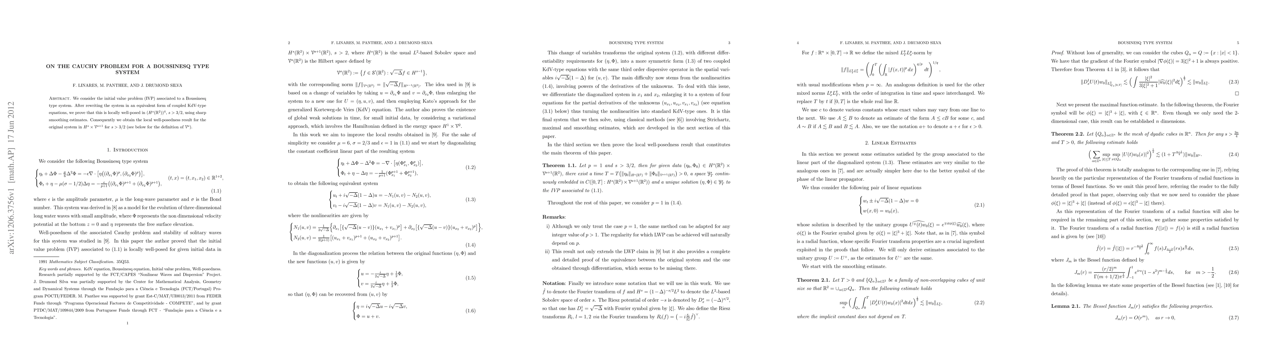 We consider the initial value problem (IVP) associated to a Boussinesq type system. After rewriting the system in an equivalent form of coupled KdV-type equations, we prove that this is locally well-posed in $(H^s(\R^2))^4$, $s>3/2$, using sharp smoothing estimates. Consequently we obtain the local well-posedness result for the original system in $H^s\times \mathcal{V}^{s+1}$ for $s>3/2$ (see below for the definition of $\mathcal{V}^{s}$).