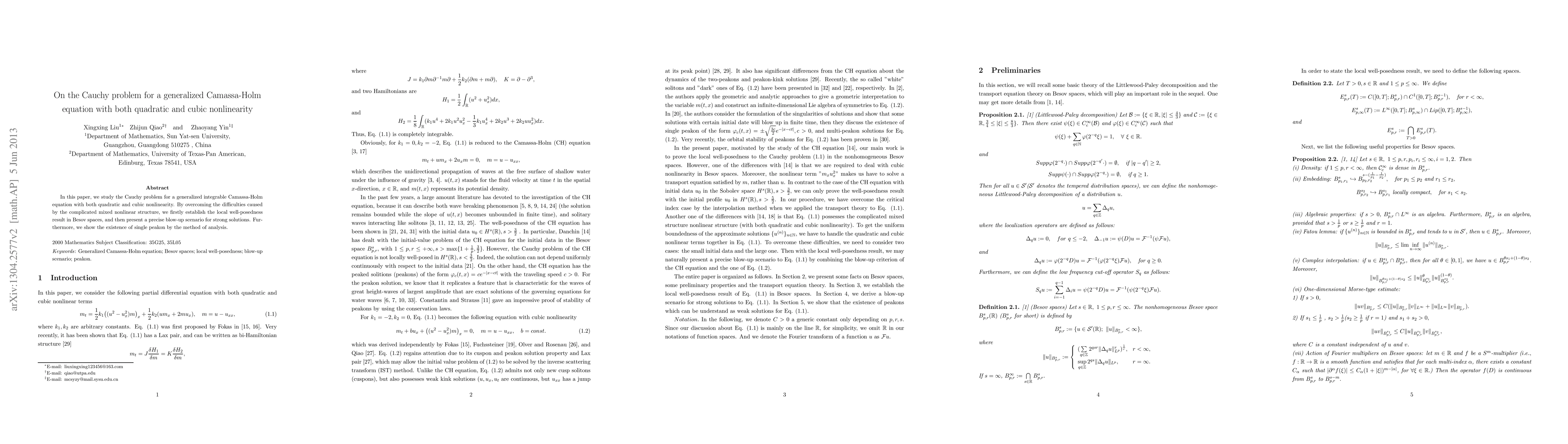 This paper investigates the local well-posedness in Besov spaces for a generalized Camassa-Holm equation featuring both quadratic and cubic nonlinearities, and presents a detailed blow-up scenario for strong solutions, alongside the existence of a single peakon.