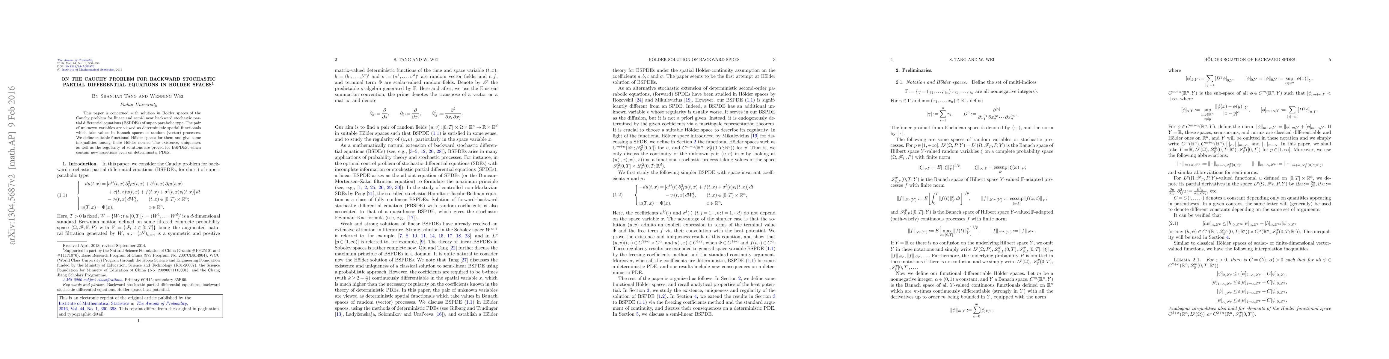 This paper investigates the Cauchy problem for linear and semi-linear backward stochastic partial differential equations (BSPDEs) in Hölder spaces, establishing existence, uniqueness, and regularity of solutions through novel inequalities and functional Hölder spaces. The results extend to super-parabolic BSPDEs, offering new insights even for deterministic PDEs.