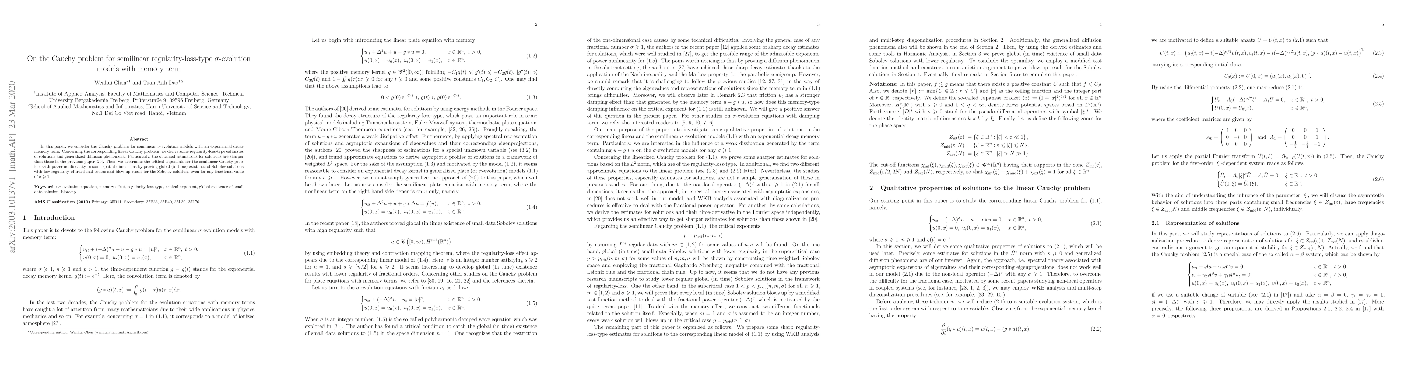 This paper investigates the Cauchy problem for semilinear evolution models with an exponential memory term, deriving regularity estimates for solutions and studying global existence and blow-up results in low-regularity Sobolev spaces.