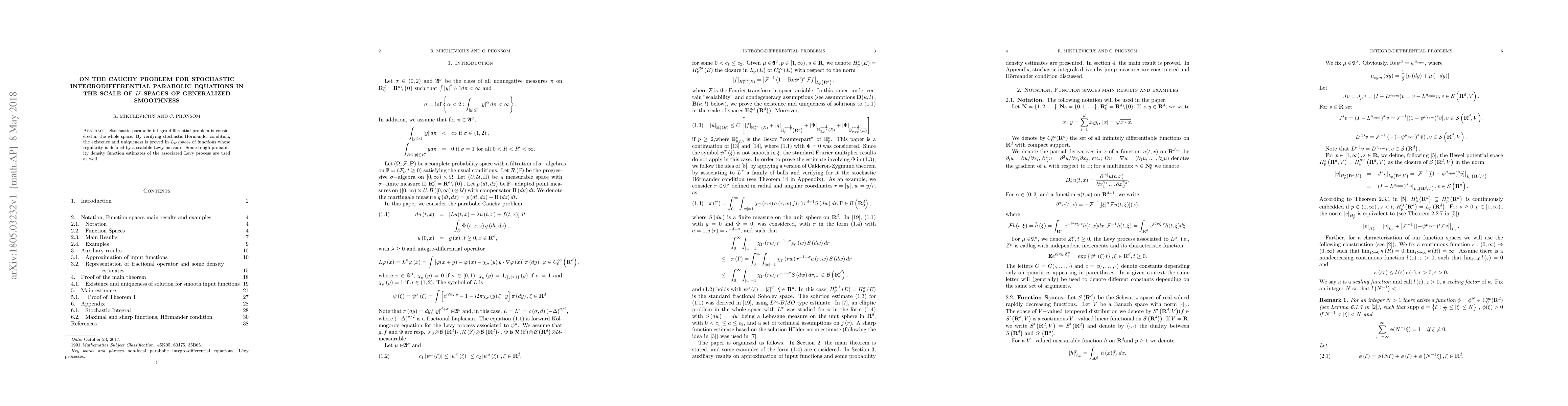 Stochastic parabolic integro-differential problem is considered in the whole space. By verifying H\"ormander condition, the existence and uniqueness is proved in Lp-spaces of functions whose regularity is defined by a scalable Levy measure. Some rough probability density function estimates of the associated Levy process are used as well.