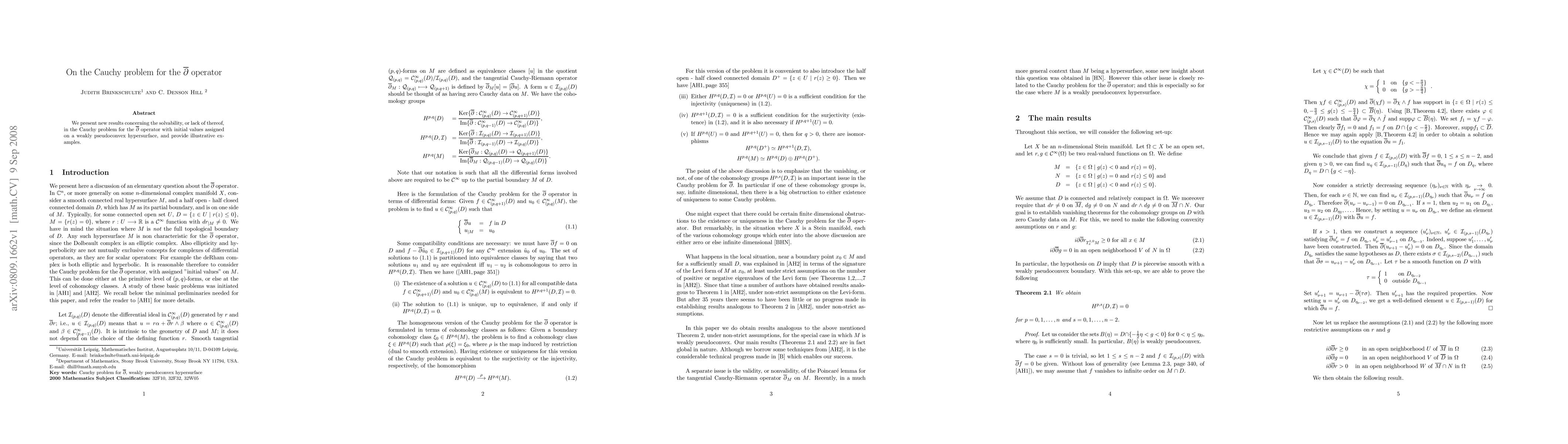 We present new results concerning the solvability, of lack thereof, in the Cauchy problem for the debar operator, with initial values assigned on a weakly pseudoconvex hypersurface, and provide illustrative examples.