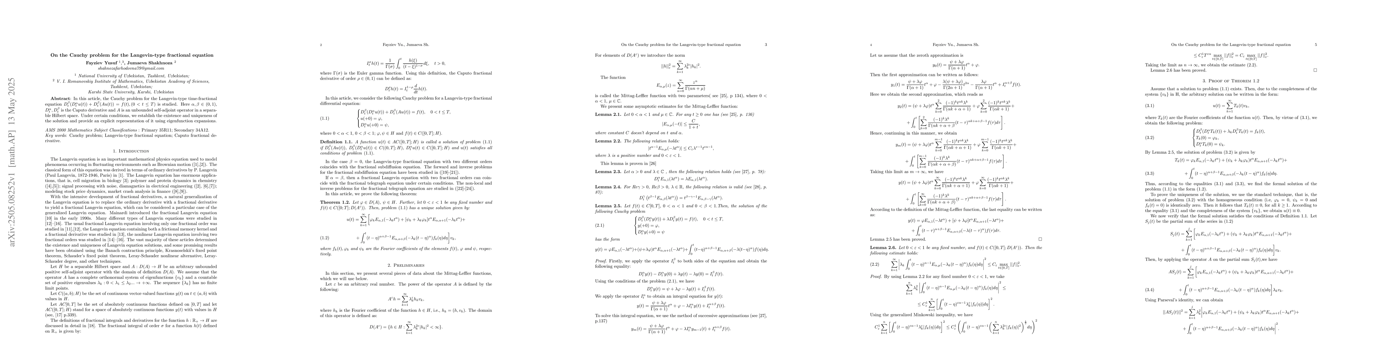 The paper presents a novel approach to solving the Cauchy problem for Langevin-type fractional equations, providing explicit solution representations via eigenfunction expansions.