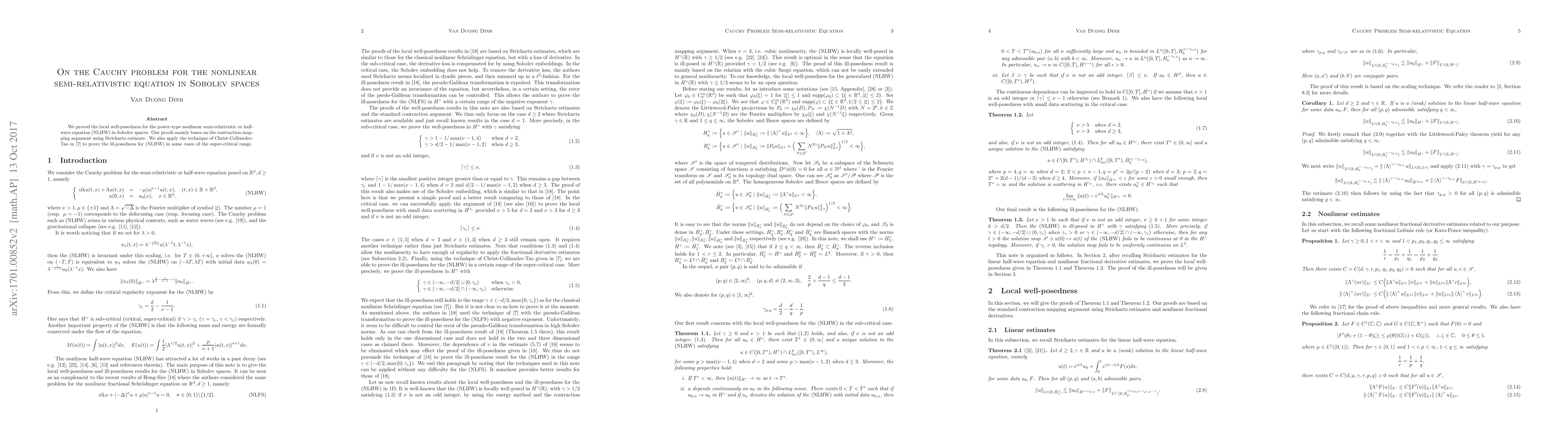 We proved the local well-posedness for the power-type nonlinear semi-relativistic or half-wave equation (NLHW) in Sobolev spaces. Our proofs mainly bases on the contraction mapping argument using Strichartz estimate. We also apply the technique of Christ-Colliander- Tao in \cite{ChristCollianderTao} to prove the ill-posedness for (NLHW) in some cases of the super-critical range.