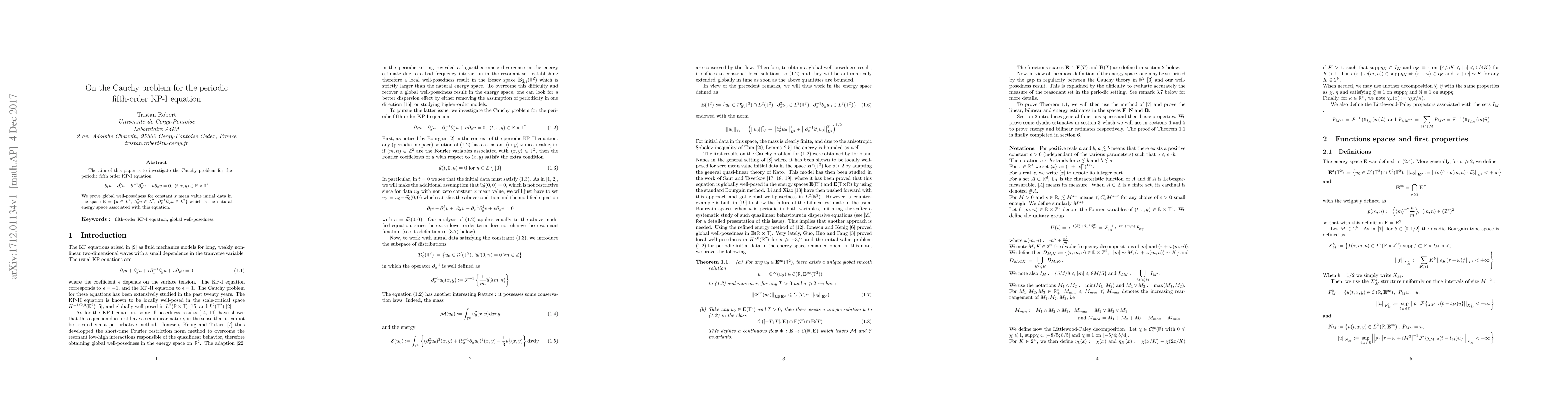 This paper investigates the Cauchy problem for the periodic fifth-order KP-I equation, proving global well-posedness for initial data with constant mean value in the natural energy space $\mathbb{E}$. The solution's existence and uniqueness are established under these conditions.