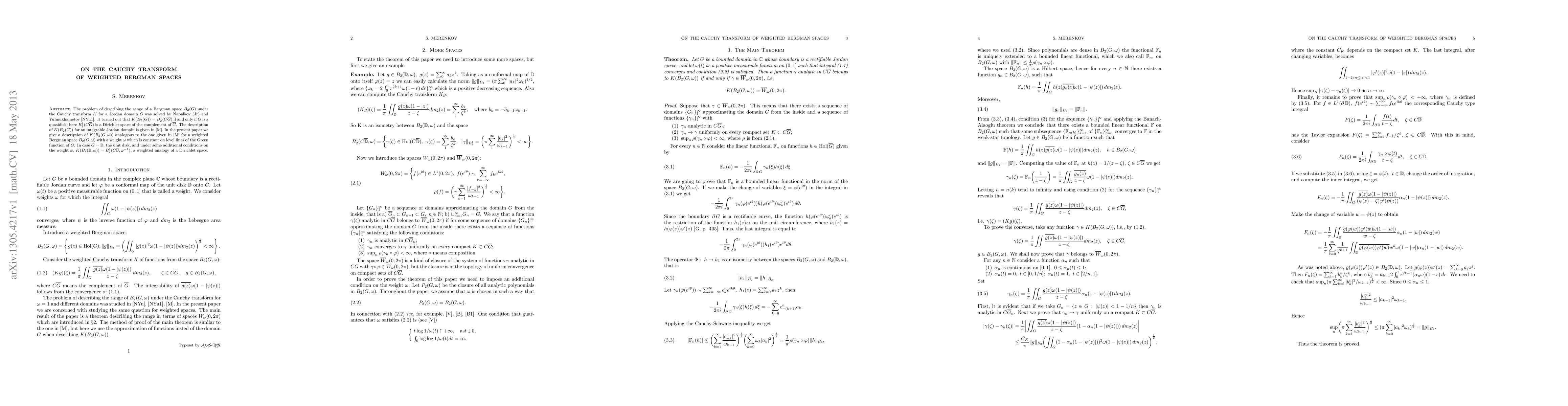 This paper extends the description of the Cauchy transform for the weighted Bergman space B_2(G,ω) to cases where ω is constant on level lines of G's Green function. The result mirrors previous findings for unweighted spaces, showing K(B_2(D,ω)) = B_2^1(C\bar{D}, ω^{-1}) under certain conditions.