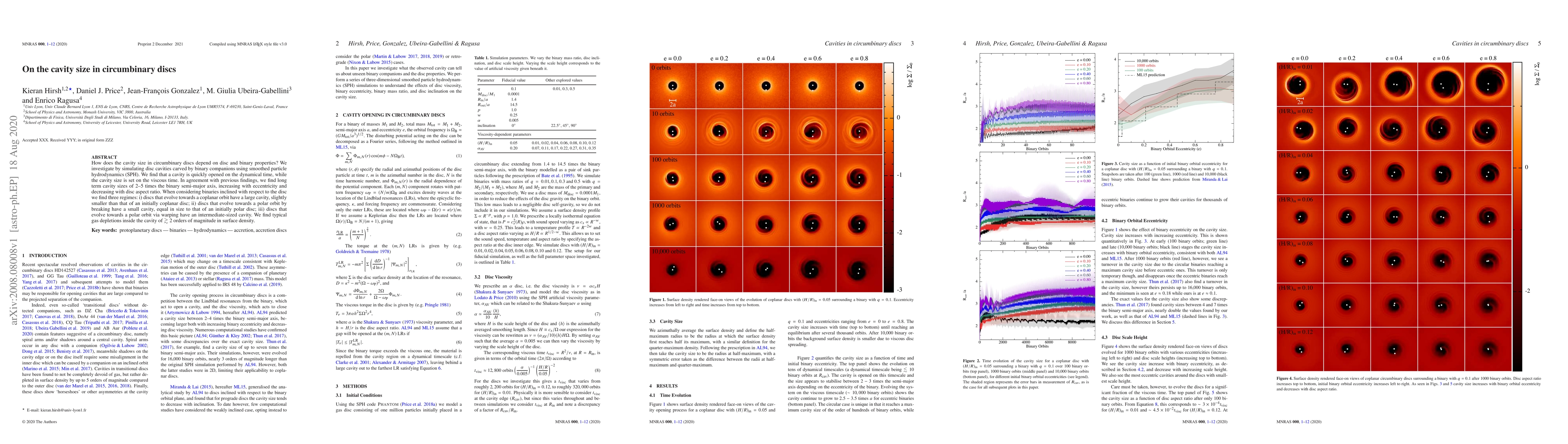 This paper investigates how cavity sizes in circumbinary discs are influenced by disc and binary properties through smoothed particle hydrodynamics simulations. It finds that cavity sizes are determined by viscous time and correlate with binary eccentricity and disc aspect ratio, typically ranging from 2-5 times the binary semi-major axis.