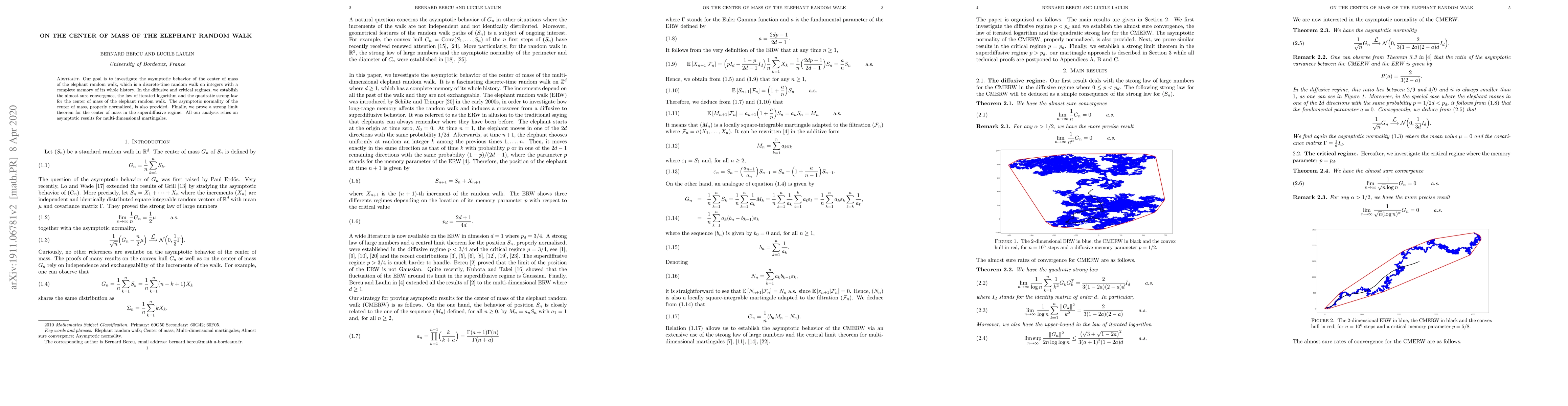 This paper investigates the asymptotic behavior of the center of mass in an elephant random walk, establishing convergence laws and asymptotic normality in the diffusive and critical regimes, and a strong limit theorem in the superdiffusive regime, all grounded in multi-dimensional martingale theory.