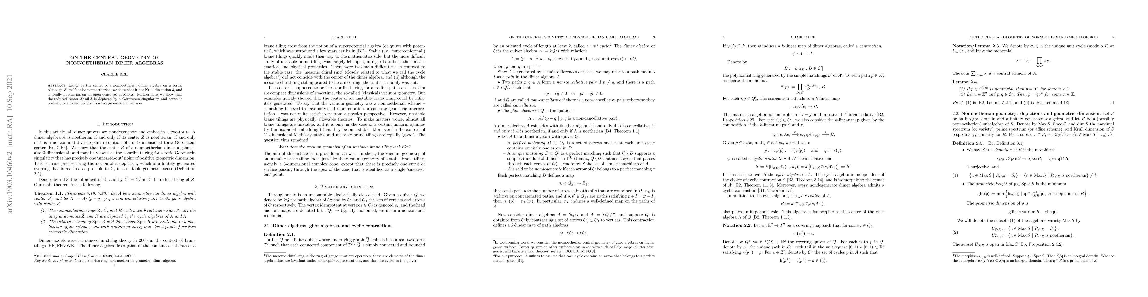 A research paper explores the central geometry of non-Noetherian dimer algebras on a torus, finding that their centers have specific properties, including one being depicted by a Gorenstein singularity with only one closed point of positive geometric dimension.