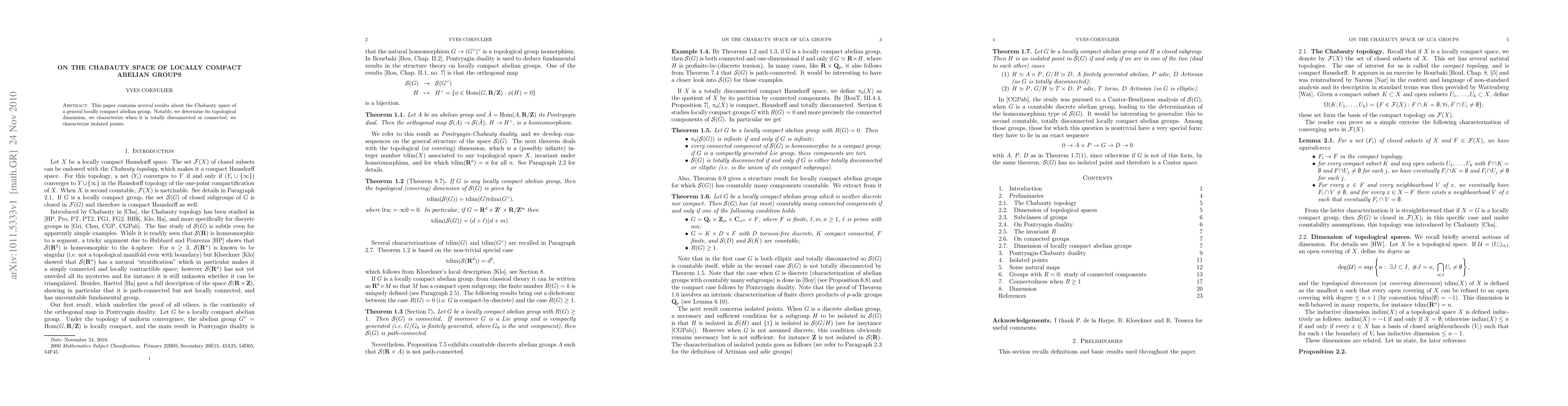 This research paper presents findings on the Chabauty space of locally compact abelian groups, determining its topological dimension, characterizing when it's totally disconnected or connected, and identifying isolated points.