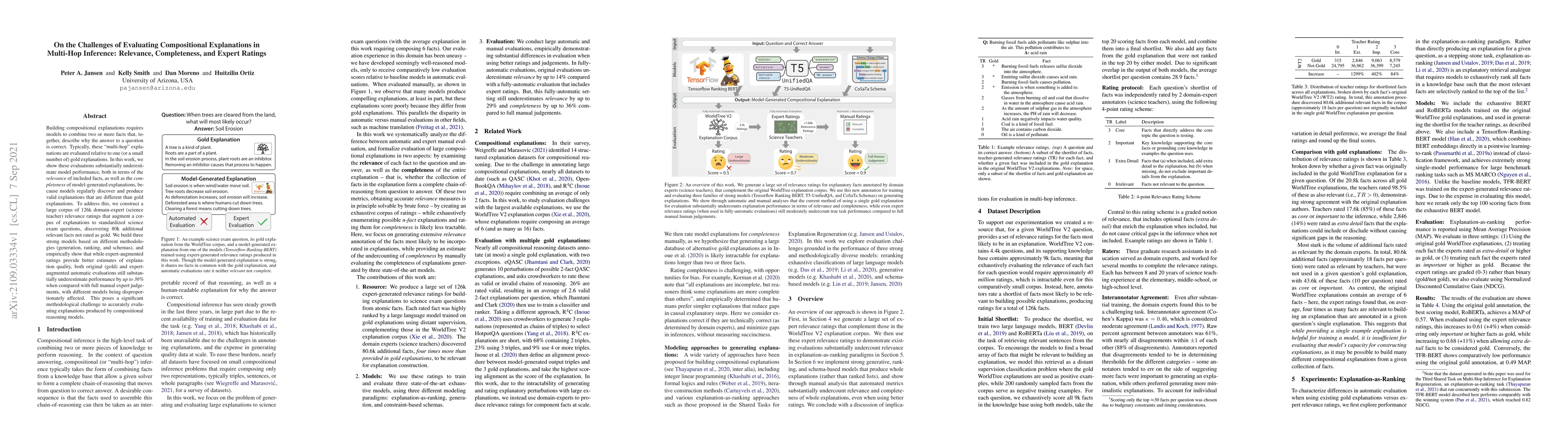Building compositional explanations requires models to combine two or more facts that, together, describe why the answer to a question is correct. Typically, these "multi-hop" explanations are evaluated relative to one (or a small number of) gold explanations. In this work, we show these evaluations substantially underestimate model performance, both in terms of the relevance of included facts, as well as the completeness of model-generated explanations, because models regularly discover and produce valid explanations that are different than gold explanations. To address this, we construct a large corpus of 126k domain-expert (science teacher) relevance ratings that augment a corpus of explanations to standardized science exam questions, discovering 80k additional relevant facts not rated as gold. We build three strong models based on different methodologies (generation, ranking, and schemas), and empirically show that while expert-augmented ratings provide better estimates of explanation quality, both original (gold) and expert-augmented automatic evaluations still substantially underestimate performance by up to 36% when compared with full manual expert judgements, with different models being disproportionately affected. This poses a significant methodological challenge to accurately evaluating explanations produced by compositional reasoning models.