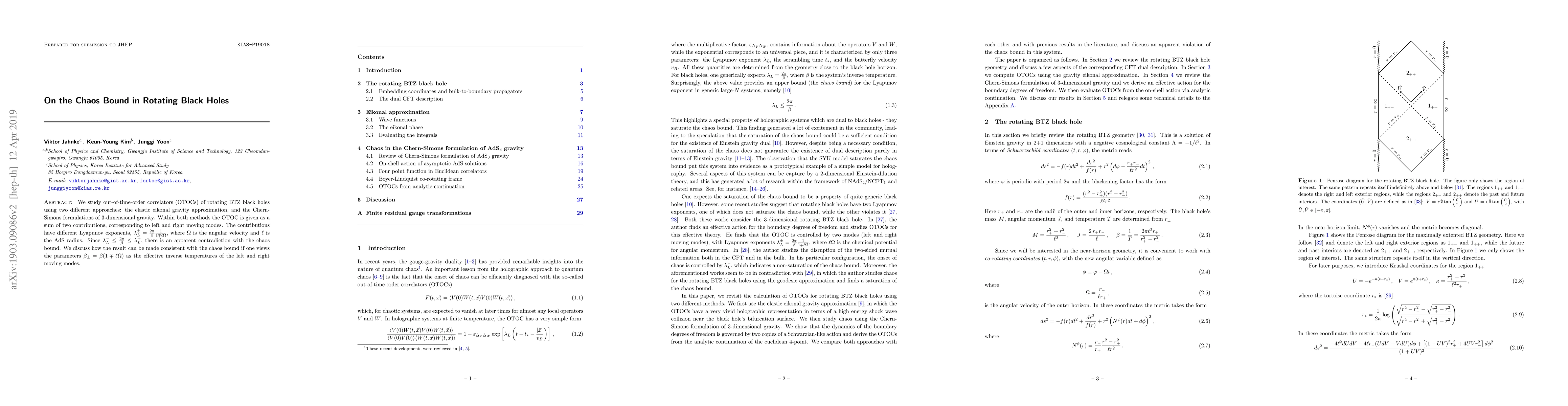 Research investigates the behavior of rotating black holes, finding that out-of-time-order correlators can be expressed in terms of two contributions with different Lyapunov exponents, challenging the established chaos bound.