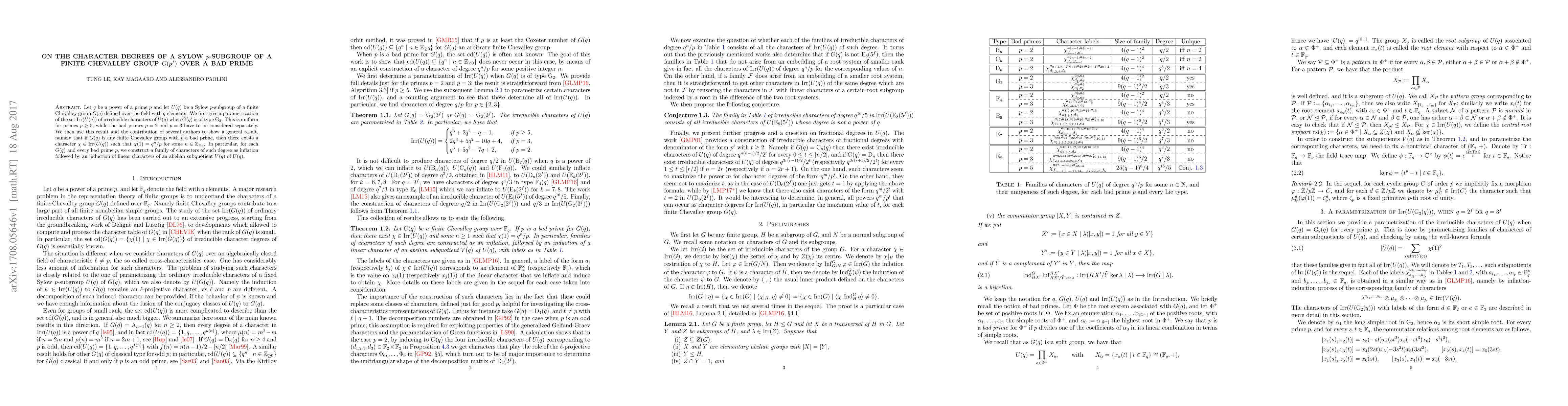 Let $q$ be a power of a prime $p$ and let $U(q)$ be a Sylow $p$-subgroup of a finite Chevalley group $G(q)$ defined over the field with $q$ elements. We first give a parametrization of the set $\text{Irr}(U(q))$ of irreducible characters of $U(q)$ when $G(q)$ is of type $\mathrm{G}_2$. This is uniform for primes $p \ge 5$, while the bad primes $p=2$ and $p=3$ have to be considered separately. We then use this result and the contribution of several authors to show a general result, namely that if $G(q)$ is any finite Chevalley group with $p$ a bad prime, then there exists a character $\chi \in \text{Irr}(U(q))$ such that $\chi(1)=q^n/p$ for some $n \in \mathbb{Z}_{\ge_0}$. In particular, for each $G(q)$ and every bad prime $p$, we construct a family of characters of such degree as inflation followed by an induction of linear characters of an abelian subquotient $V(q)$ of $U(q)$.