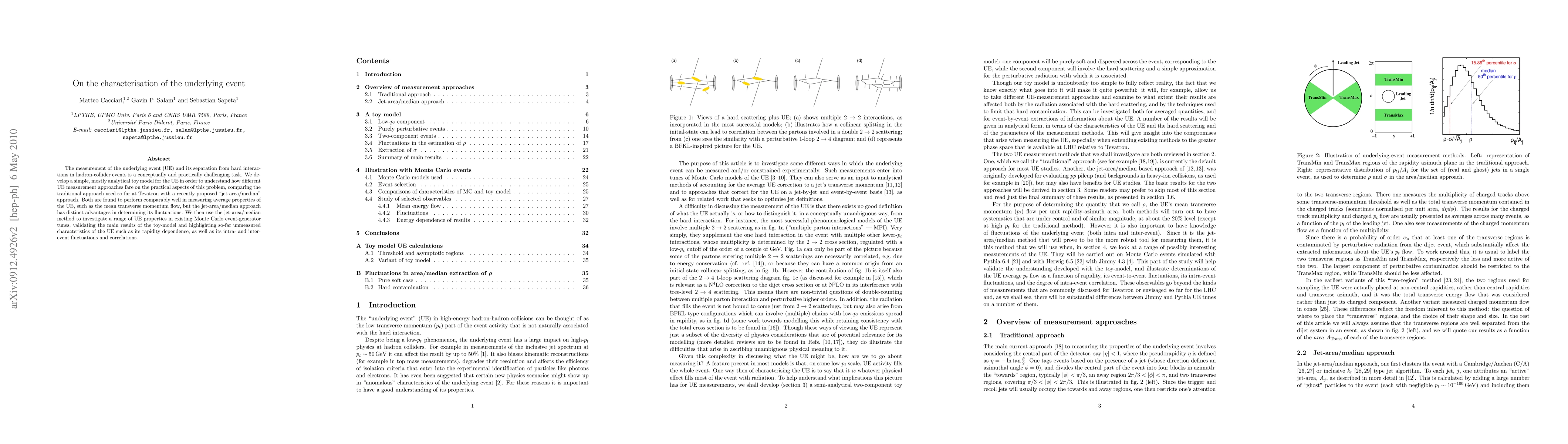 This paper develops a toy model to compare traditional and "jet-area/median" methods for measuring the underlying event in hadron colliders, finding both perform similarly for average properties but the latter excels in fluctuation analysis. The study validates the model using Monte Carlo simulations to reveal new UE characteristics like rapidity dependence and fluctuations.