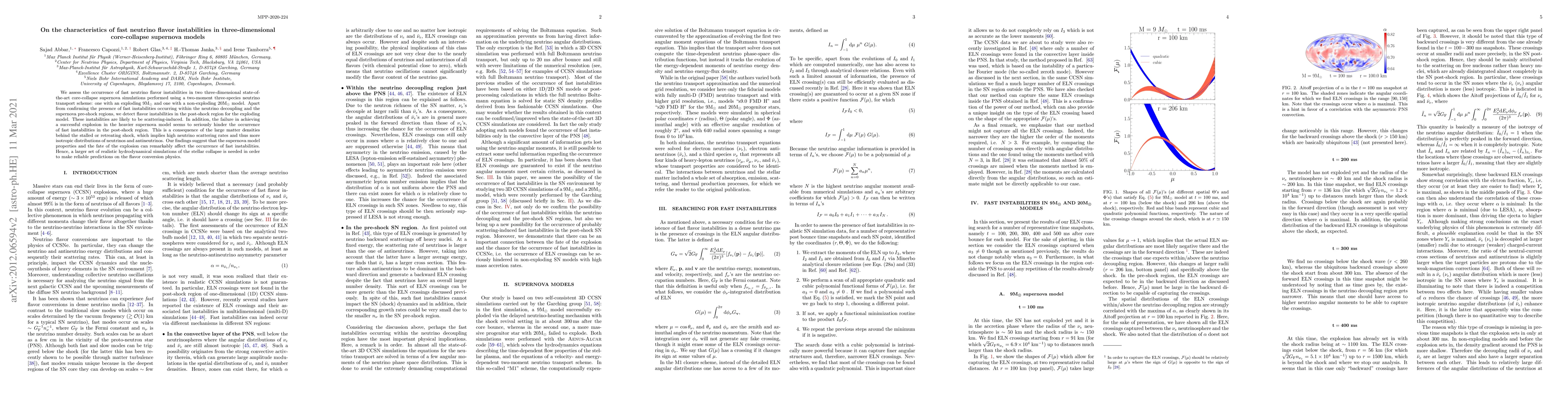 This paper investigates fast neutrino flavor instabilities in three-dimensional core-collapse supernova models, confirming their presence in the decoupling and pre-shock regions and detecting them in the post-shock region for an exploding model. The study suggests that successful explosions influence the occurrence of these instabilities, highlighting the need for more simulations to understand flavor conversion physics.