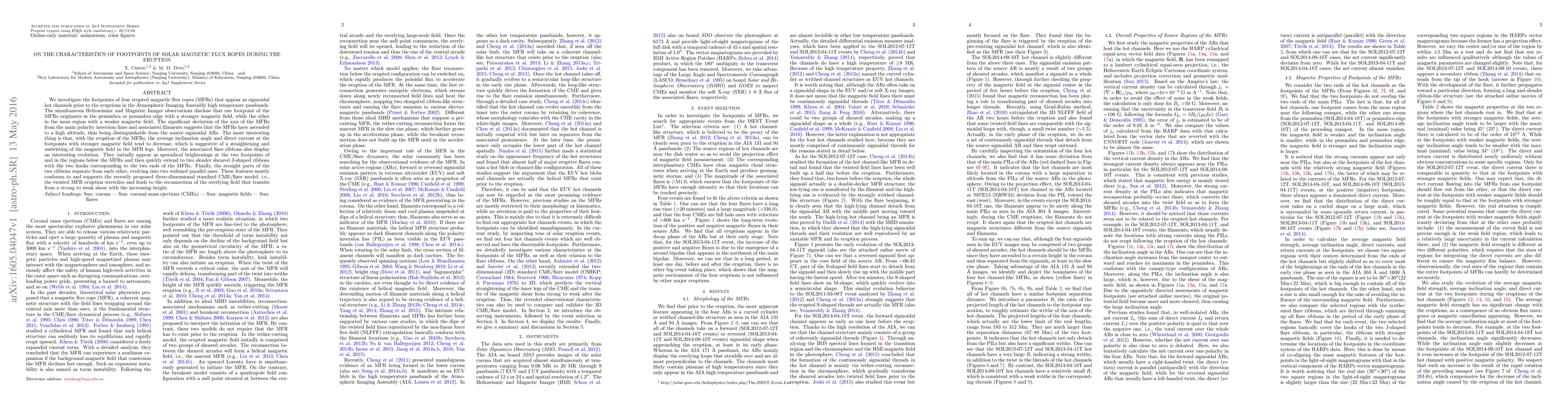 Researchers studied magnetic flux ropes that erupted from the sun, finding that their footpoints had stronger magnetic fields in one region and weaker fields in another, suggesting a twisting and untwisting of the field during eruption.
