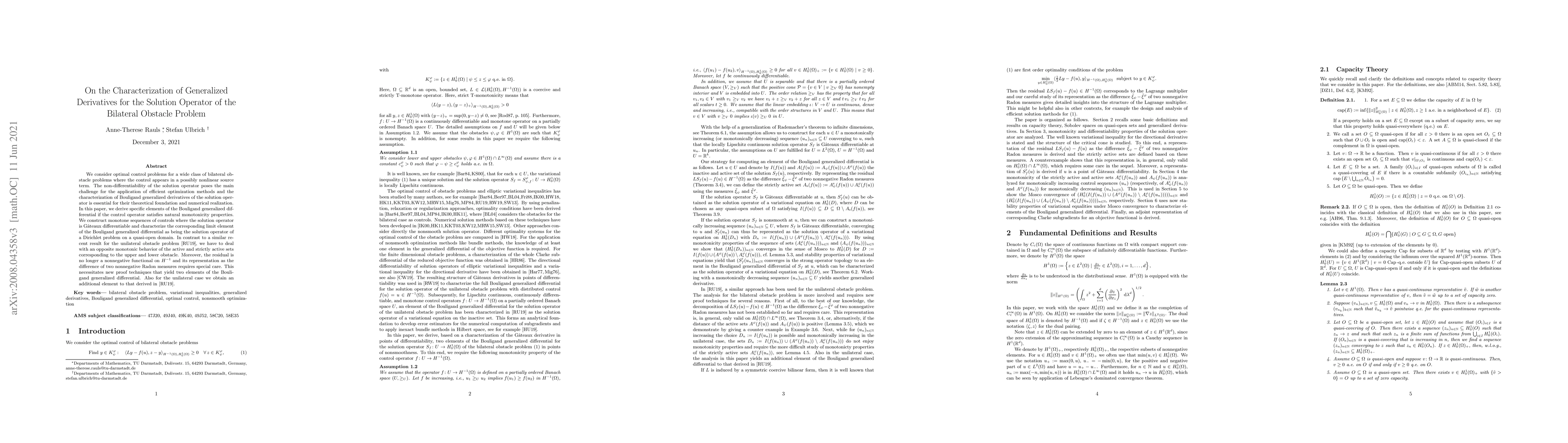 This paper characterizes Bouligand generalized derivatives for the solution operator of bilateral obstacle problems, addressing non-differentiability challenges. It introduces new proof techniques to derive two elements of the generalized differential, contrasting with unilateral obstacle problems and requiring careful handling of the residual.