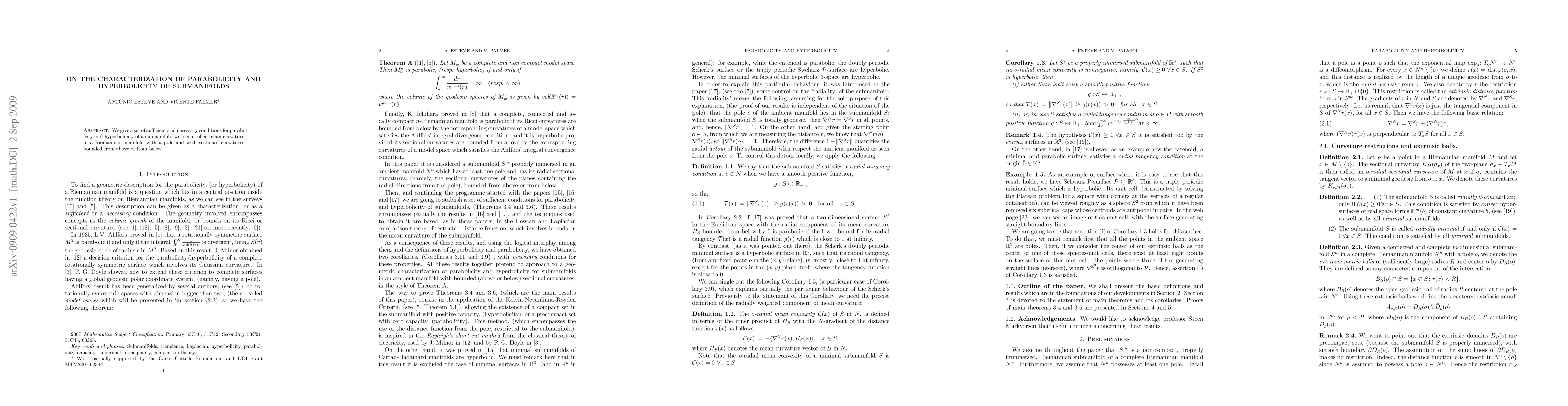 This research paper provides conditions for determining if a submanifold is parabolic or hyperbolic based on its mean curvature and sectional curvatures in specific types of Riemannian manifolds.
