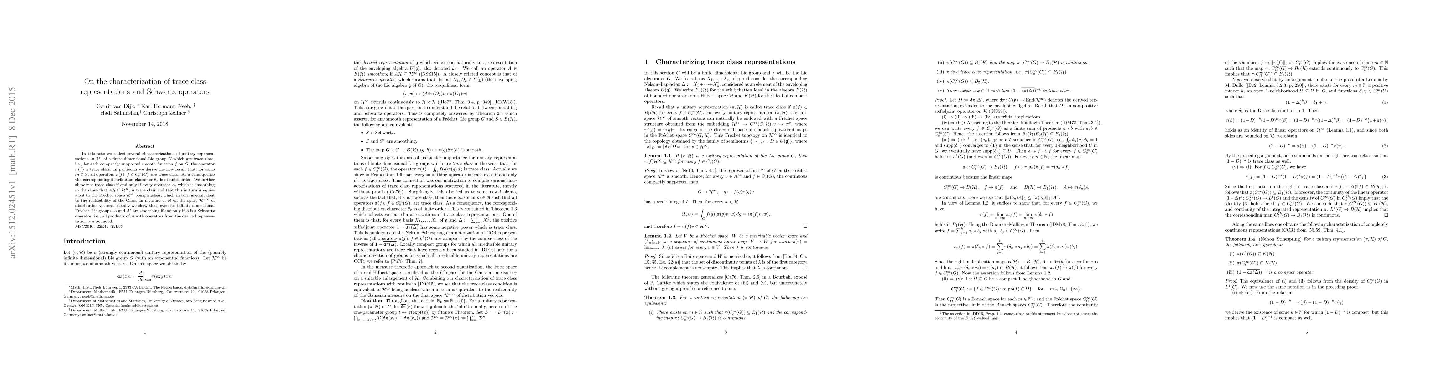 Researchers characterize trace class representations of finite-dimensional Lie groups, establishing conditions under which operators and distributions are trace class, with implications for smoothing operators and Gaussian measures.