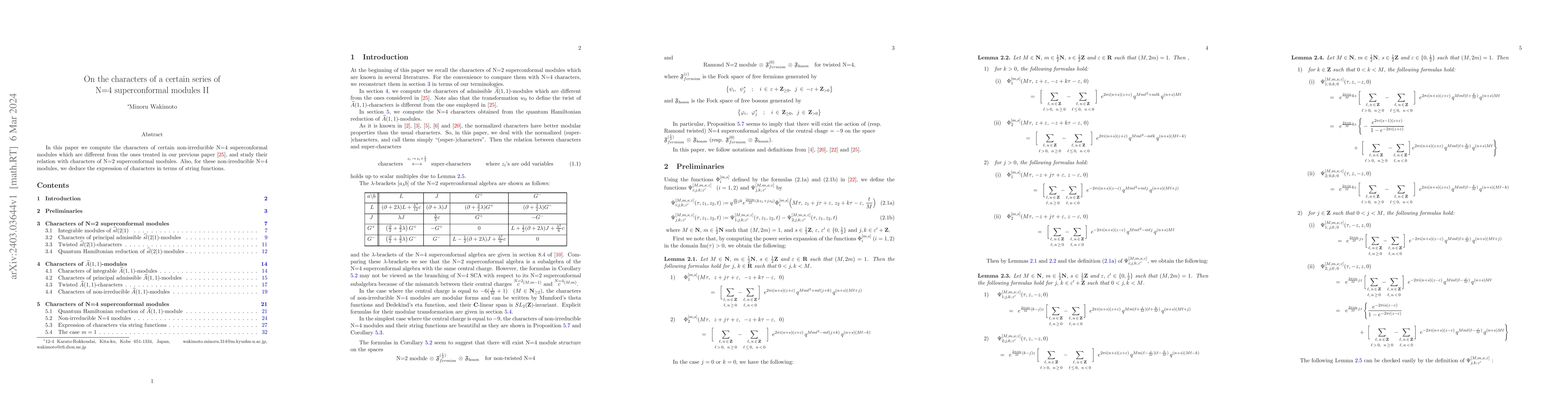 This paper computes characters for non-irreducible N=4 superconformal modules distinct from those previously studied, and explores their connections to N=2 superconformal module characters, also expressing these characters using string functions.