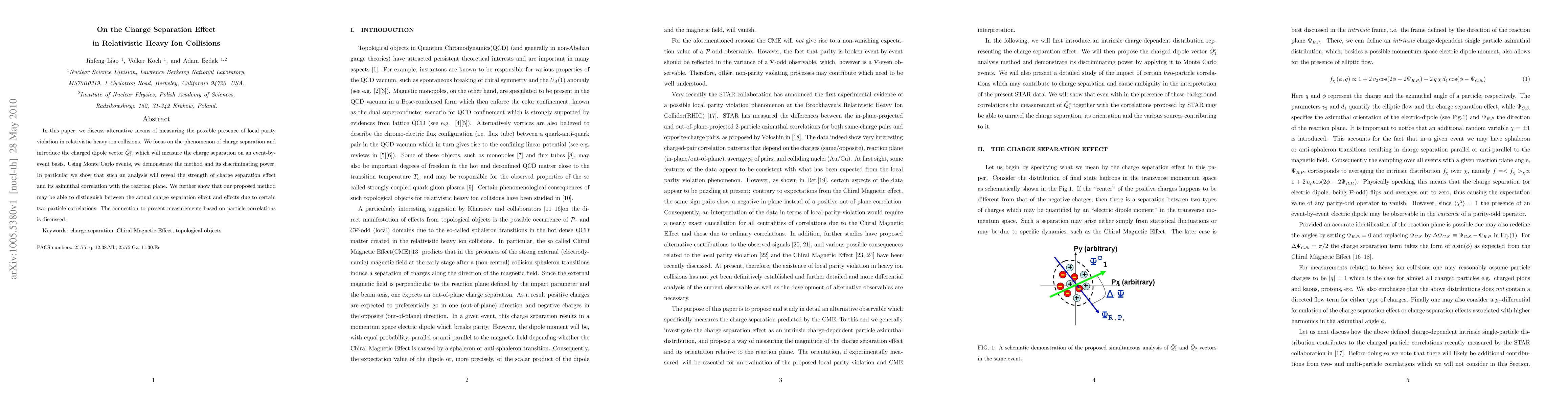 In this paper, we discuss alternative means of measuring the possible presence of local parity violation in relativistic heavy ion collisions. We focus on the phenomenon of charge separation and introduce the charged dipole vector $\hat{Q}^c_1$, which will measure the charge separation on an event-by-event basis. Using Monte Carlo events, we demonstrate the method and its discriminating power. In particular we show that such an analysis will reveal the strength of charge separation effect and its azimuthal correlation with the reaction plane. We further show that our proposed method may be able to distinguish between the actual charge separation effect and effects due to certain two particle correlations. The connection to present measurements based on particle correlations is discussed.