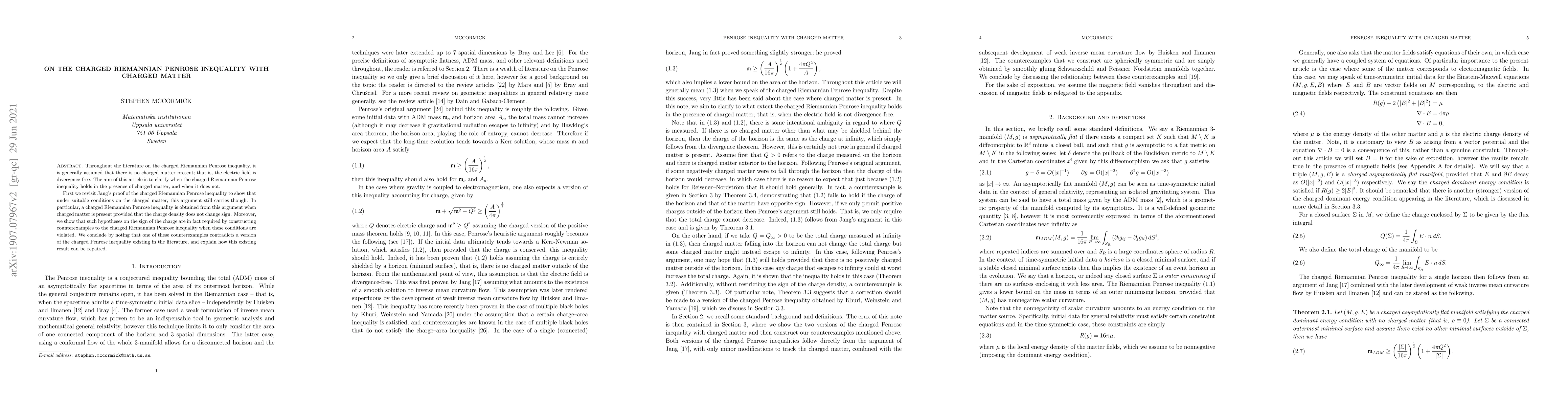 The main technical contribution is the proof of the Riemannian Penrose inequality with charge for asymptotically flat extensions.