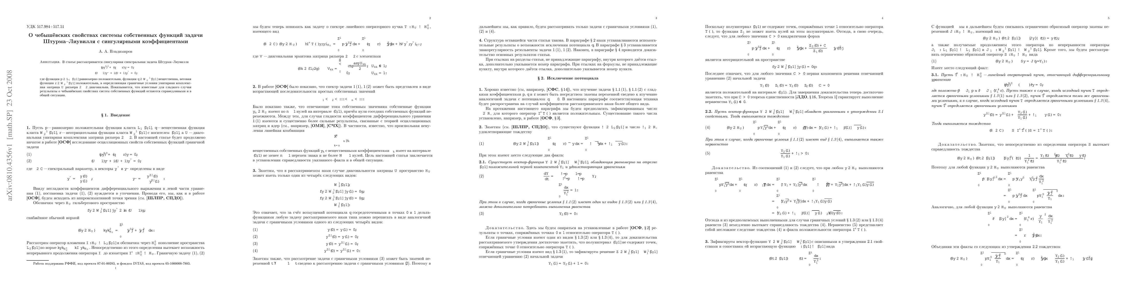 In the paper we consider singular spectral Sturm--Liouville problem $-(py')'+(q-\lambda r)y=0$, $(U-1)y^{\vee}+i(U+1)y^{\wedge}=0$, where function $p\in L_{\infty}[0,1]$ is uniformly positive, generalized function $q\in W_2^{-1}[0,1]$ is real-valued, generalized weight function $r\in W_2^{-1}[0,1]$ is positive and unitary matrix $U\in\mathbb C^{2\times 2}$ is diagonal. The goal is to prove that well-known (for smooth case) facts about Chebyshev property of eigenfunctions hold in general case.