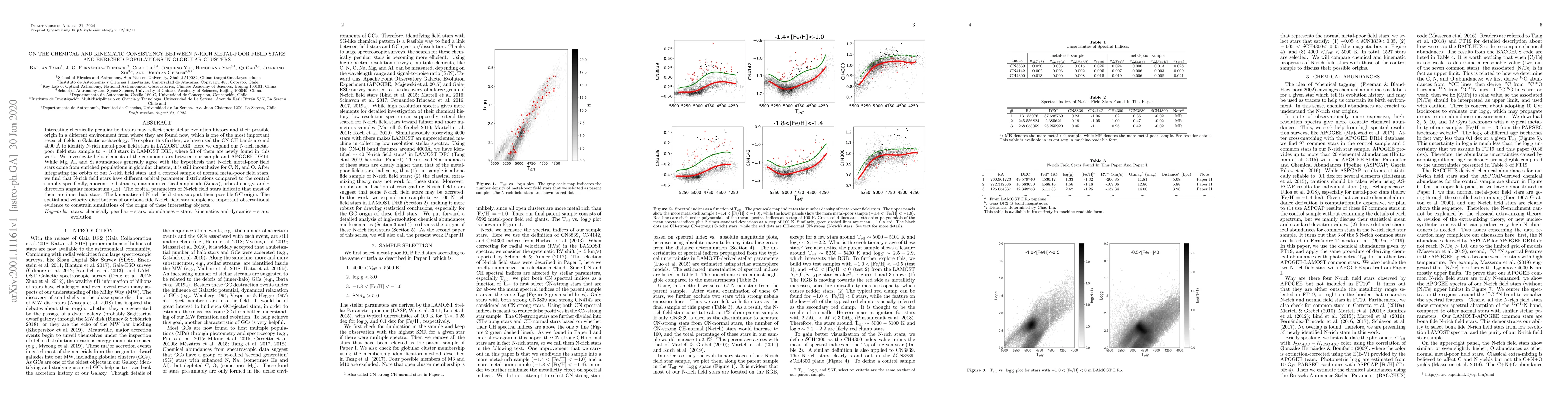 This paper investigates N-rich metal-poor field stars identified via CN-CH bands, finding they likely originate from enriched globular clusters. The study reveals distinct kinematic properties, such as different orbital parameters, supporting their extragalactic origin and providing crucial observational data for simulations of their formation.