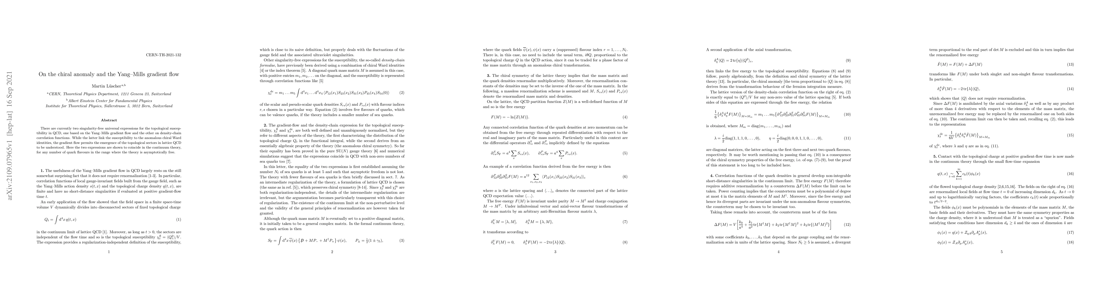 There are currently two singularity-free universal expressions for the topological susceptibility in QCD, one based on the Yang-Mills gradient flow and the other on density-chain correlation functions. While the latter link the susceptibility to the anomalous chiral Ward identities, the gradient flow permits the emergence of the topological sectors in lattice QCD to be understood. Here the two expressions are shown to coincide in the continuum theory, for any number of quark flavours in the range where the theory is asymptotically free.