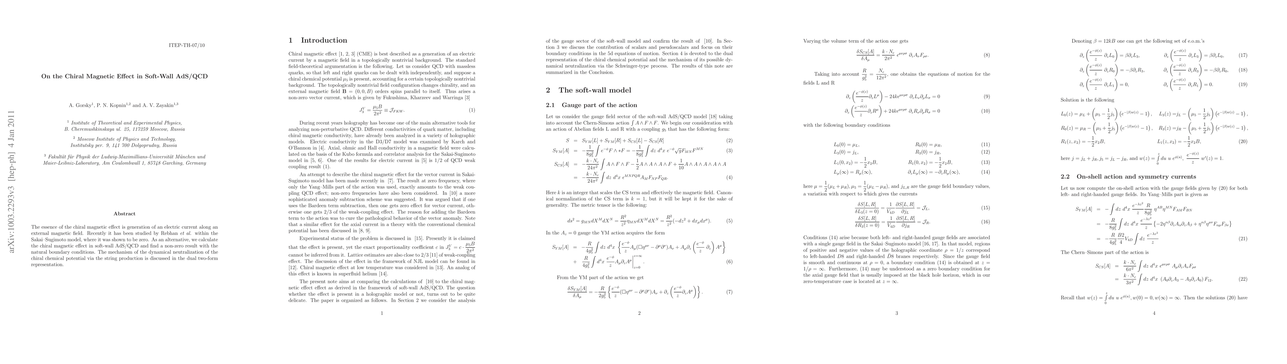 This research paper calculates the chiral magnetic effect in soft-wall AdS/QCD and finds a non-zero result, contradicting previous studies, with implications for understanding neutralization of the chiral chemical potential.